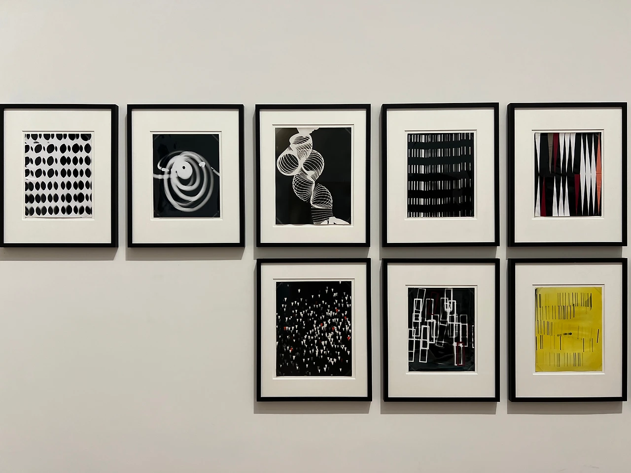 첫 번째 섹션인 '황홀한 추상'에선 1952년의 추상 사진작업인 포토그램이 주를 이룹니다. '카메라를 쓰지 않고 암실에서 인화지 위에 물체를 올려놓고 빛을 쪼이는' 실험적인 방식으로 만들어진 포토그램은, 기하학적 이미지의 추상 사진으로, 회화성이 강해 저는 처음에 이 작품들이 사진이 아닌 줄 알았어요. 물론 회화 작품들이 섞여 있어 더 그랬지만요. 클라인은 1947년 파리로 활동무대를 옮겨 미니멀리스트이자 색면추상화가인 엘즈워스 켈리를 만났고, 막스 빌, 라슬로 모홀리 나기 등 당대 예술가들의 작품과 글에 관심을 가지며 영향을 받습니다.