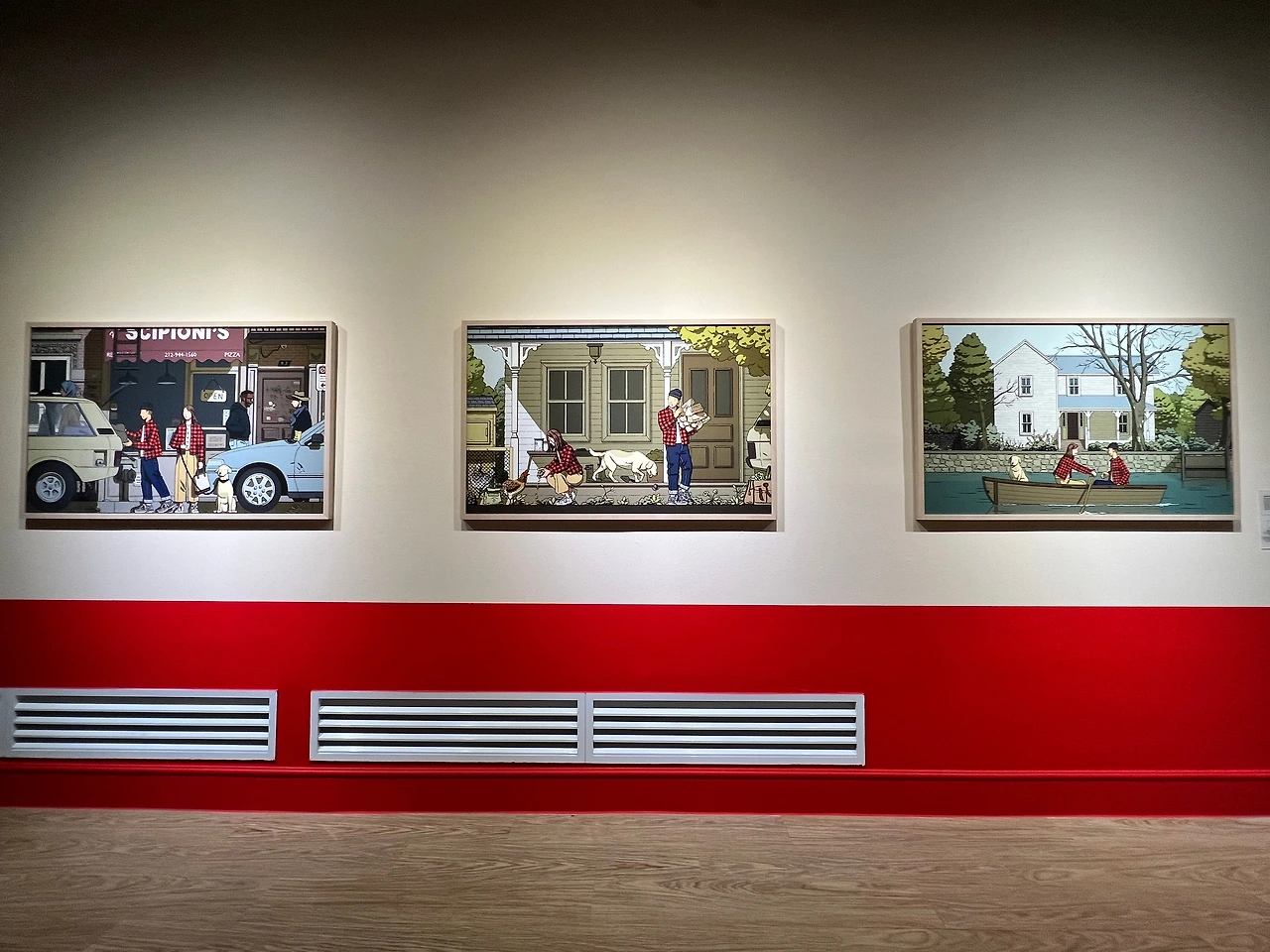 전시 작품들 중 개인적으로 찾아보는 재미를 가장 많이 준 작품은 <1983년 여름 뉴욕>(2018) 시리즈와 <상상 속> 시리즈(2021)였어요. 커미션으로 제작된 두 시리즈 모두 4점의 작품 구성으로, <1983년 여름 뉴욕>은 1980년대 뉴욕의 모습을, <상상 속>은, 벨기에, 프랑스, 독일, 네덜란드의 거리와 특징을 녹여냈죠.