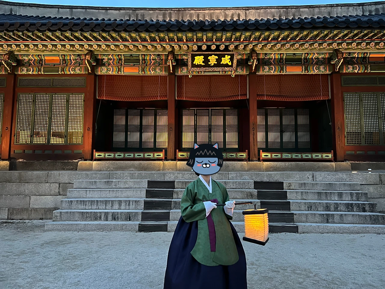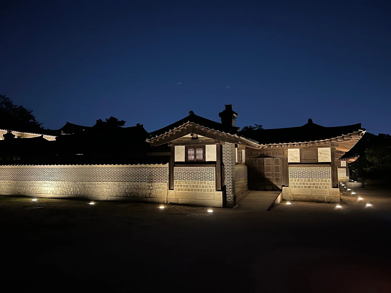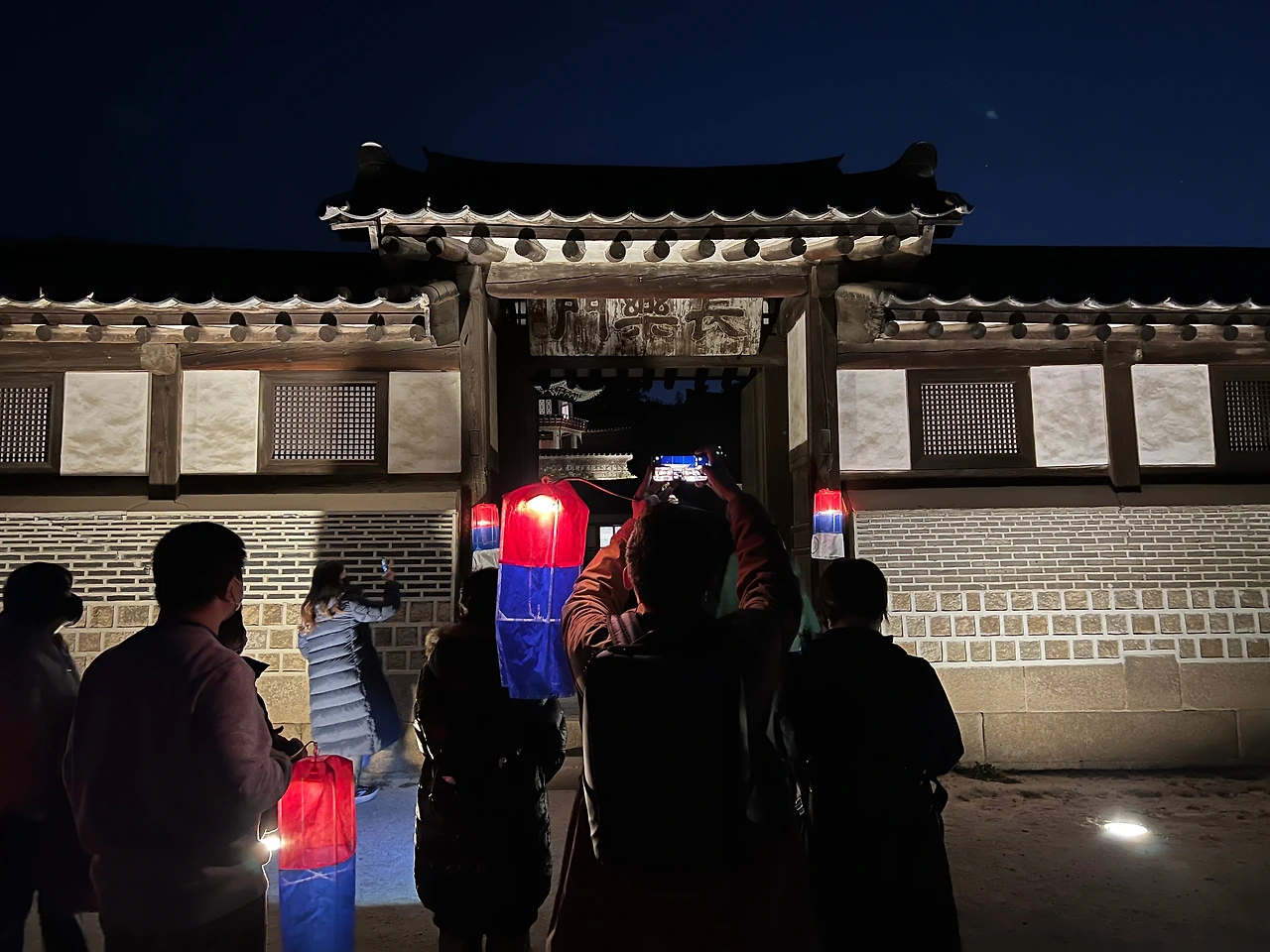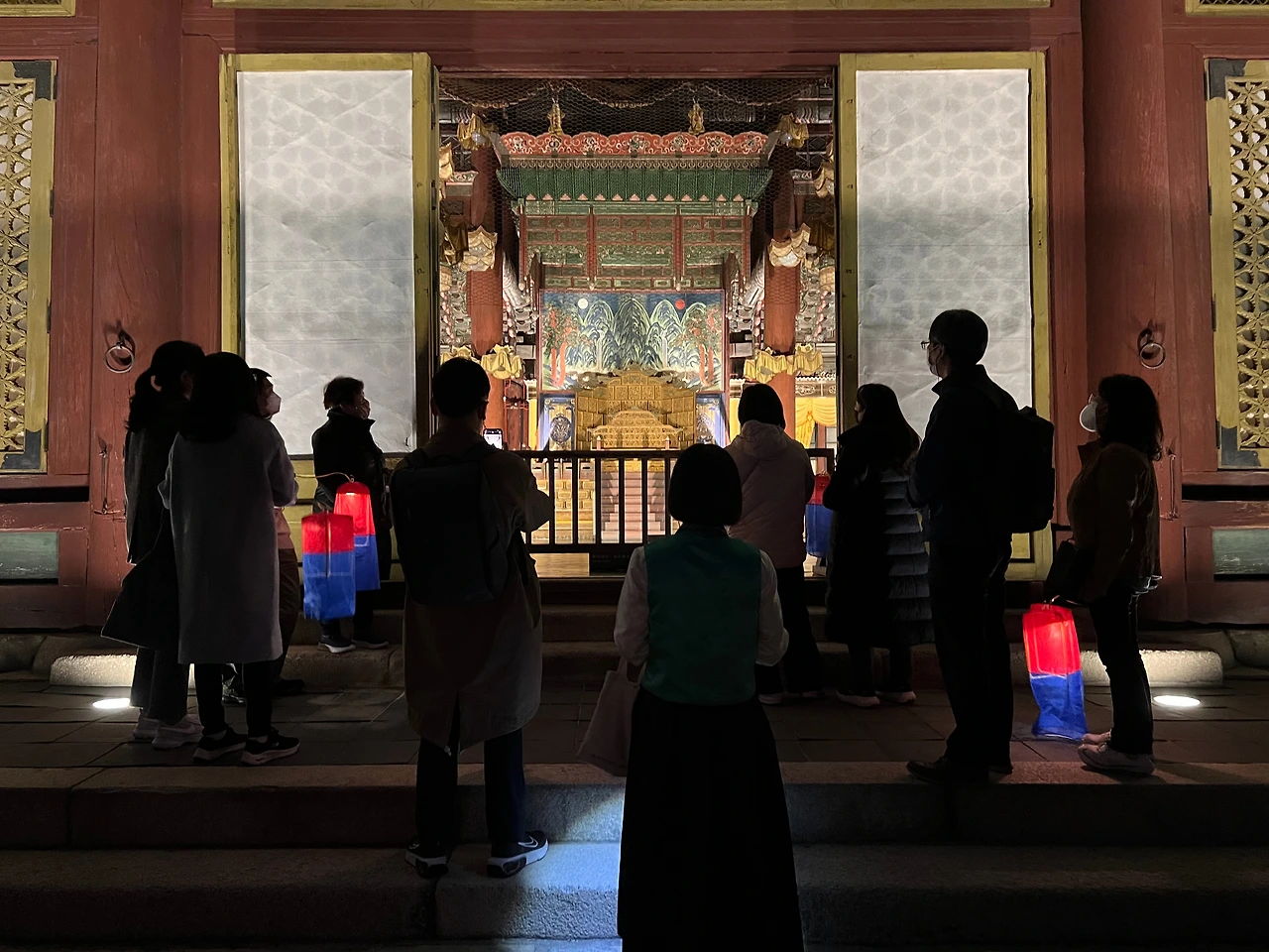 낮의 고궁을 관람할 땐 기와나 장식, 단청 색상에 집중하게 되는 반면, 밤에는 조명에 의지해 전반적인 전각의 형태와 전통 창문살, 내부 구조에 더 집중하게 됩니다. 궁궐은 왕의 거처인 만큼 건축물과 장식에 좋은 의미가 가득한데, 낮엔 잘 눈에 들어오지 않던 길상의 의미를 담은 다채로운 문양의 창문살의 형태가 밤이 되면 확연히 눈에 들어오기도 하고요.