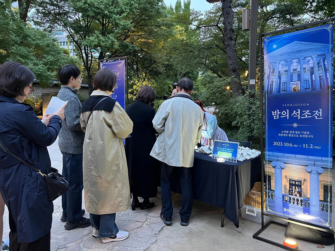<밤의 석조전>이 끝난 후에도 덕수궁 야간 관람은 지속됩니다. 물론 개별적으로요. 덕수궁은 휴궁일인 월요일을 제외하고 오전 9시부터 오후 9시까지 개방 중이라 관람이 가능하거든요. 꼭 프로그램 참여가 아니더라도 덕수궁 매표 마감시간인 오후 8시까지만 입장하면 한 시간 동안 여유롭게 궁을 돌아볼 수 있는데, 관람료도 1,000원으로 저렴해 가을밤 차 한 잔 들고 혼자만의 사색에 빠져도, 좋아하는 사람과 진솔한 대화를 나누기에도 조용하고 좋습니다.