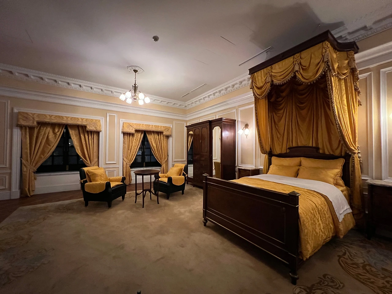 석조전 앞에선 대한제국 총관이 관람객을 맞아줍니다. 우렁찬 목소리로 환영해 주는 총관과 순검을 따라 석조전 계단을 오른 후 열린 문을 통해 내부로 들어가면 개화기 복식을 갖춘 전문 해설사가 기다리고 있죠. 관람객들은 수신기를 통해 해설을 들으며 석조전 1층, 2층에 있는 황제의 생활공간을 둘러보는데, 정해진 프로그램들이 있어 낮에 진행하는 전문 해설만큼 긴 시간이 할애되진 않았지만, 밤에 들으니 같은 내용이라도 분위기가 사뭇 다르게 다가오더라고요.