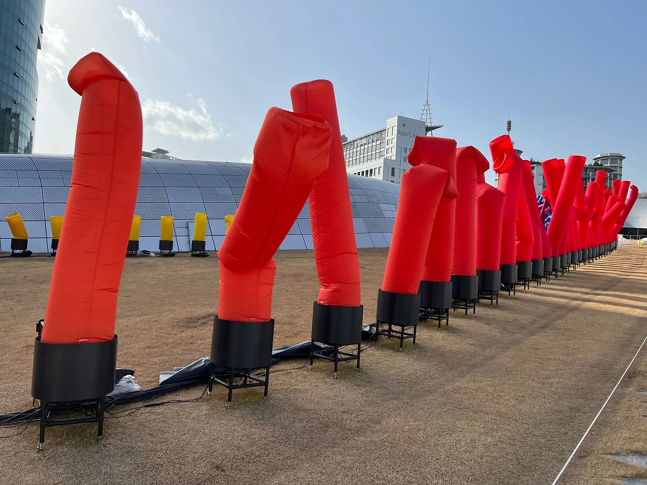 실내 전시를 본 후엔 잔디마당에 설치된 공공디자인 설치 작품 <We’d rather be alive than dead( 삶은 그 어떤 경우에도 죽음보다 아름답다)>로 이동하면 됩니다. 실내 전시장에서도 일부가 보이긴 하지만 잔디마당 전체에 설치된 작품이라 12시부터 1시간 30분 간격으로 진행되는 외부 작동 시간에 맞춰서 보셔야 해요. 추우니까, 실내 전시를 보다가 작동되는 거 보고 나가면 딱 좋죠.