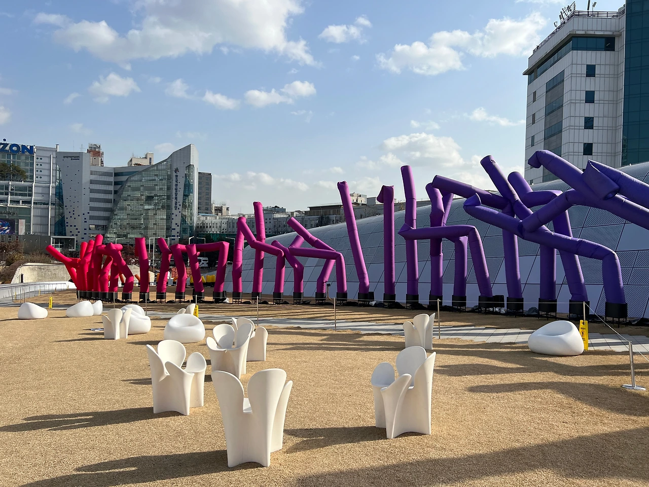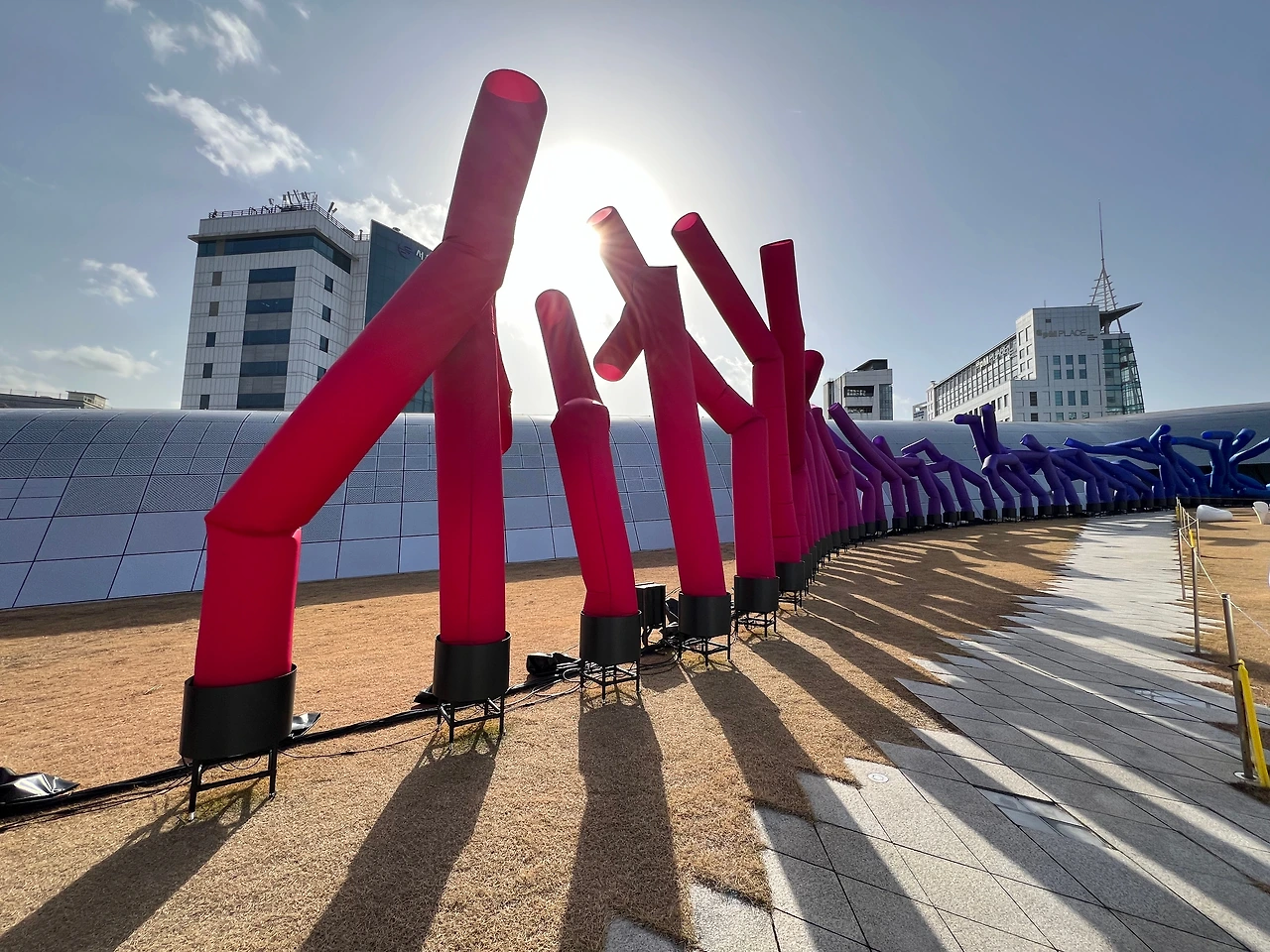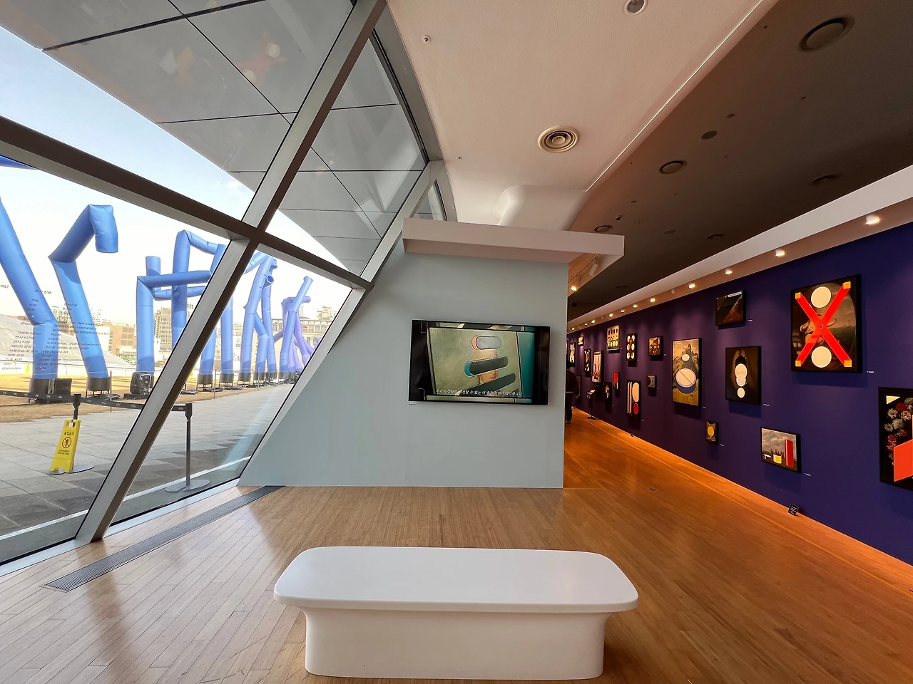 이 작품은 DDP 전시를 위해 특별 기획되어 이미 9월부터 선보였는데, 실내 전시와 다르게 올 12월까지만 볼 수 있으니, 보고 싶다면 서두르셔야 합니다. 긴 막대형 조형물의 외형은 주유소나 개업 상점 앞에서 호객용으로 설치된 에어 댄서에서 디자인 요소를 가지고 와서 처음 보는 작품이지만 눈에 아무 친숙합니다. 작품 초입에 있는 모니터에도 설명이 있지만, 이 작품은 “UN에서 발표한 데이터 중 발견한 지난 120년간 한국의 기대수명 데이터의 추이를 보며, 한국의 기대수명이 지난 120년 동안 거의 4배 가까이 증가하여 전 세계 국가 중에서도 가장 큰 폭으로 증가했고, 기대수명이 그 시대의 의료와 복지, 경제 수준을 반영하는 중요한 지표로 인식되며, 이 급격한 상승은 대한민국이 얼마나 빠르게 성장했는지를 보여준다"라는 내용을, 열린 공간에 막대그래프처럼 시각화하여 보여주고 있죠. 제작 과정은 실내 전시장에서 확인할 수 있어요.