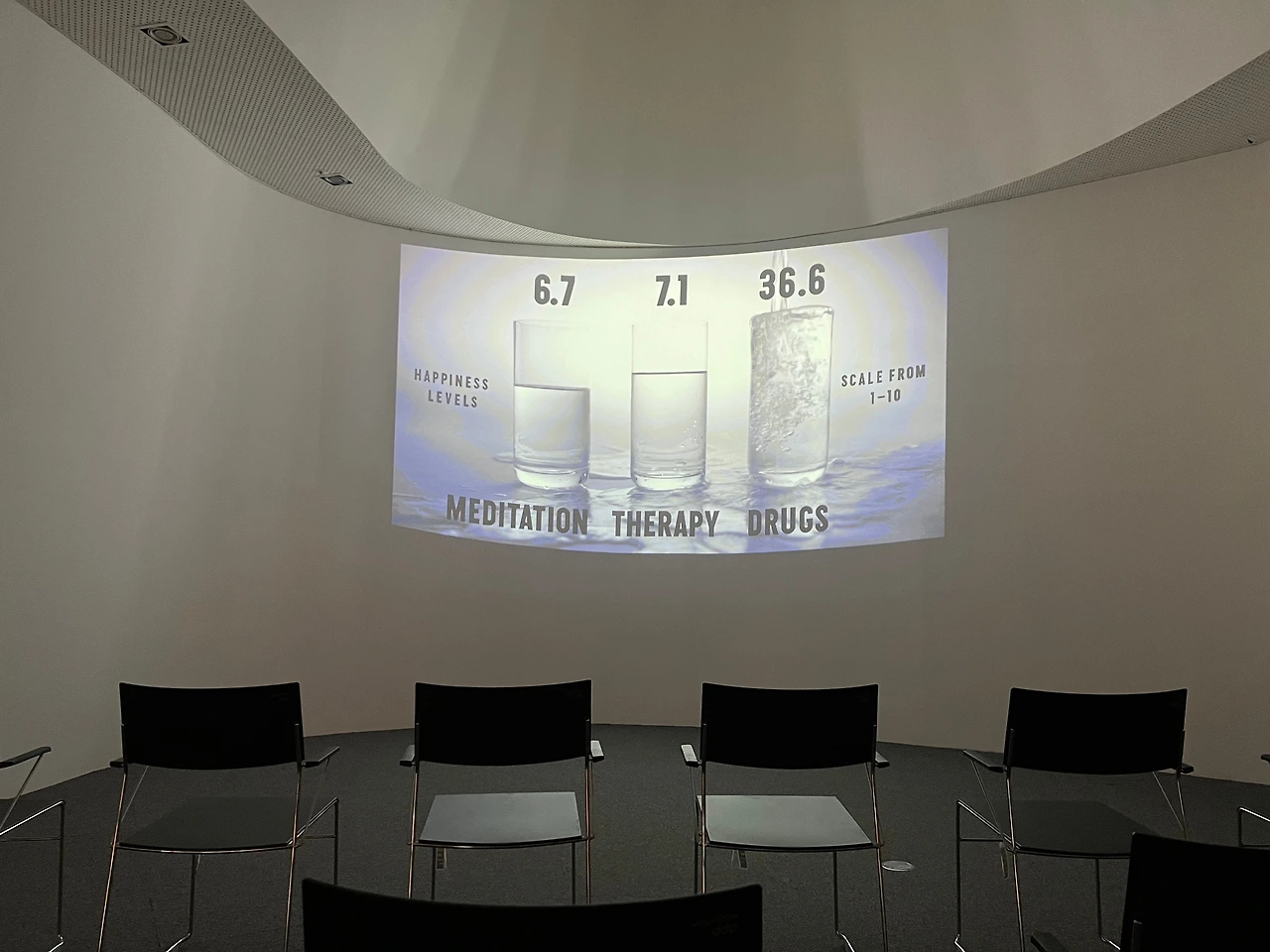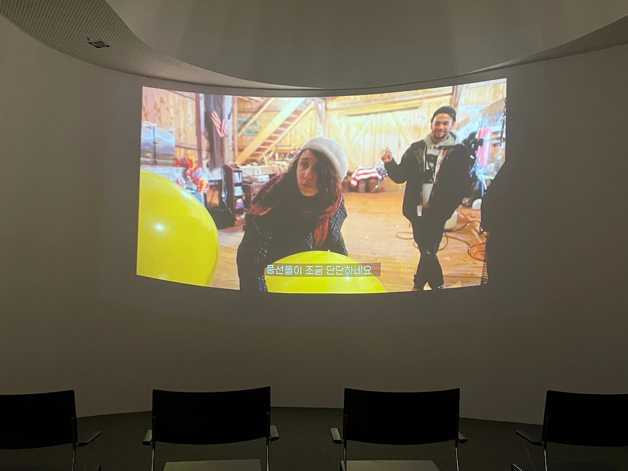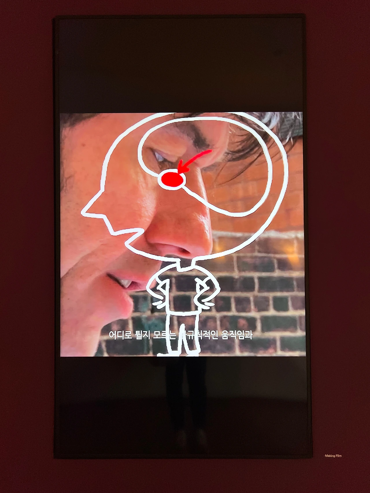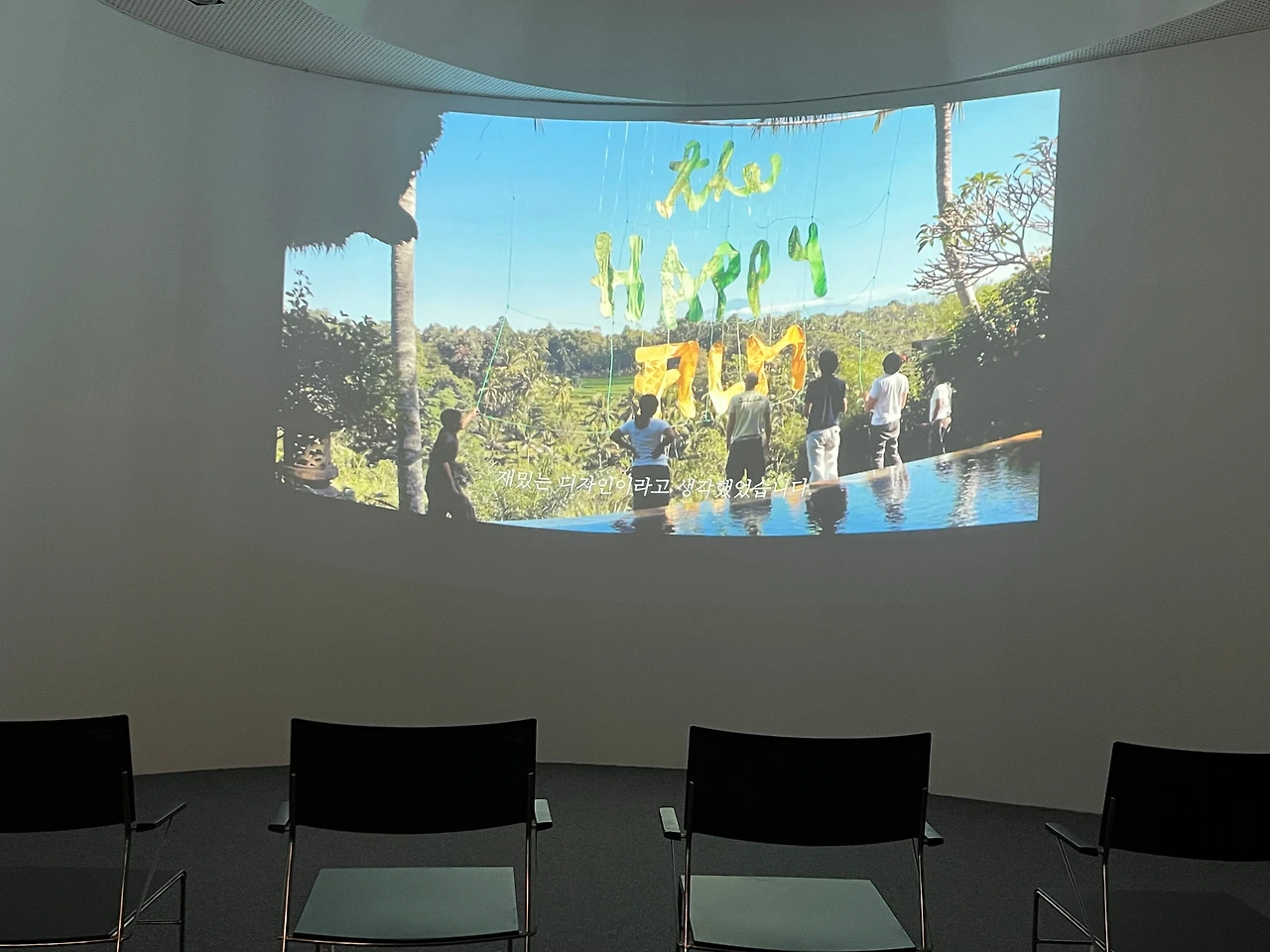 작가의 긍정 메시지는 그가 찍은 95분의 다큐멘터리 영화 “Happy film”에서 다시 한번 정리됩니다. “행복한 삶”은 누구나 꿈꾸지만, 자신이 만족할 정도로 그 행복을 느끼기는 어렵죠. 작가 역시 오래 사귄 연인과 헤어지면서 행복 지수를 높일 수 있는 방법에 대해 고민하게 되는데, 영화 속에선 그 지수를 높이는 방법으로 ‘명상’, ‘심리 치료’, '약물' 세 가지 실험을 진행합니다. 영화는 그 과정을 기록해 보여주고 있어요. 어떤 것이 가장 효과적이었는지는, 영화를 통해 확인해 보세요. 힌트를 드리자면, 인간은 사회적 동물이라는 것. 자극적이지 않은 다큐멘터리 영화로, 작품 제작 과정이 등장하긴 하지만 해설 내용은 거의 담고 있지 않는 데다 소재나 내용상 성인이 보기에 적합합니다. 사전 예약 후 관람할 수 있으니 네이버 예약을 통해 예약 후 참석하세요. 신청한 분이 없으면 상영을 하지 않으니까요. 현장에서도 예약을 받는지는 전시장 인포데스크에 문의해 보시고요.