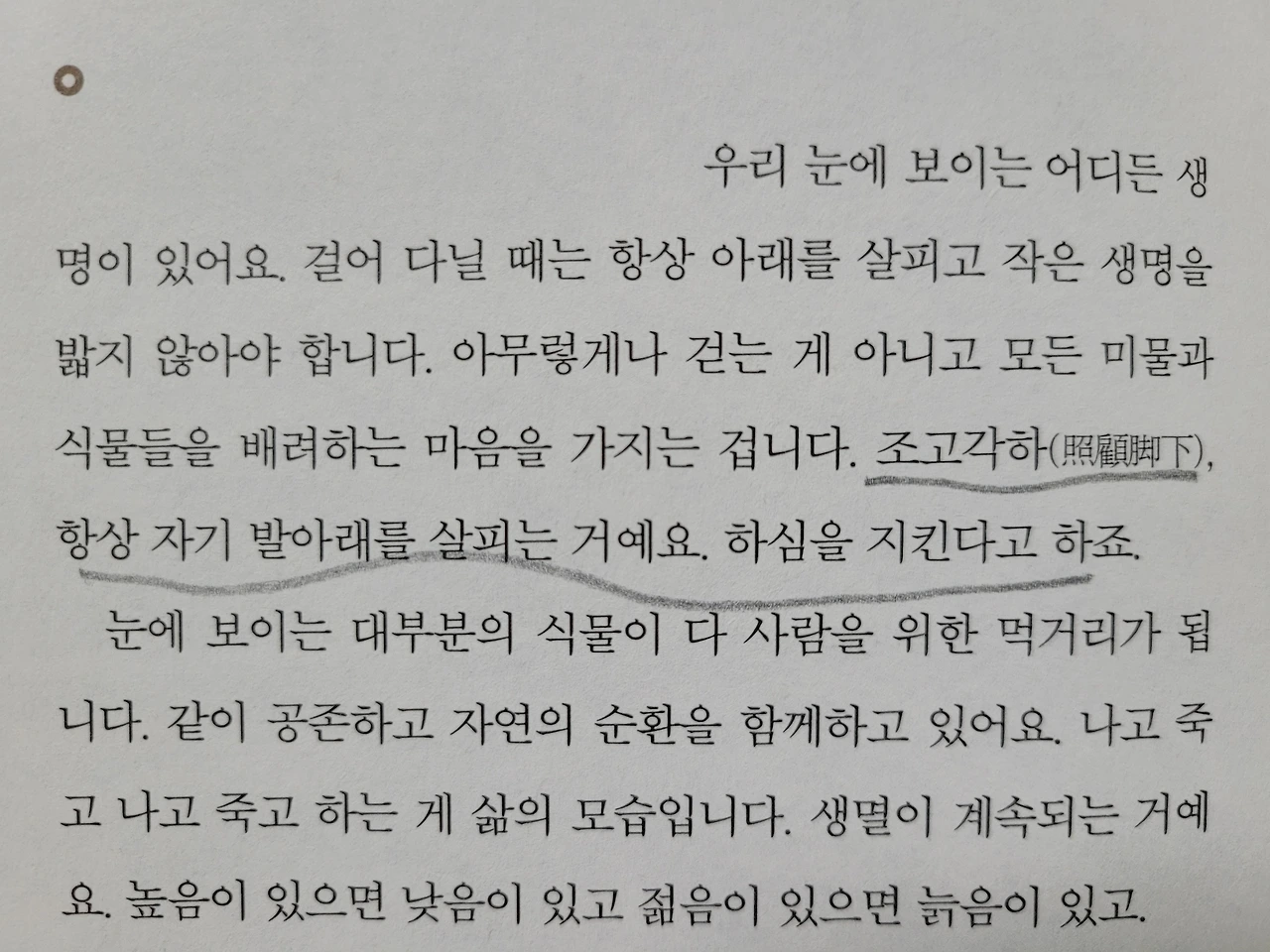 그러다 정신이 번쩍 들었다. 뺨을 때리는 눈보라는 맞을 수밖에 없지만, 그 거센 눈보라 속으로 길을 떠난 사제들이 있었음을 잊지 말아야 한다고 그는 말했다. 그렇지. 눈보라에 뺨을 맞는다고 그게 아프고 무섭다고 이 자리에 서서 술 마시고 울고 불고 징징거릴 수는 없지. 누군가는 그래도 길을 떠났지. 나는 무력하고, 하찮은 부속품이라 거대한 불행 앞에는 무릎이 꺾이기도 하지만 슬픔을 아는 부속품이니 또 힘을 내야지.부속품으로 삐걱대며 기능하더라도그 슬픔이 나를 녹슬지 않게 해 '시적 진실성'을 찾아야지. 조고각하, 발아래를 살펴 하심을 지켜야지.