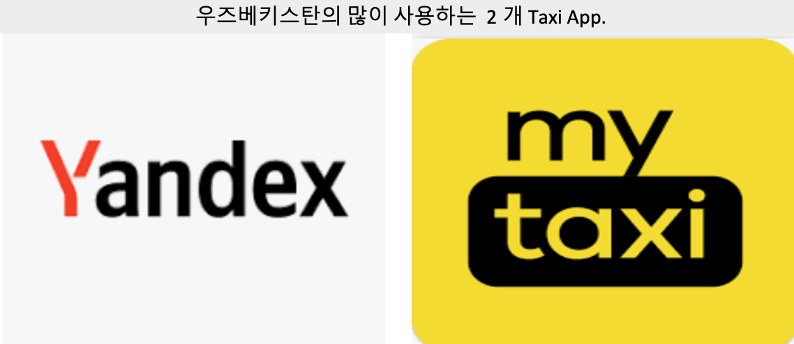 우즈베키스탄에서는 MyTaxi와 Yandex 라는 2개의 Taxi 앱을 많이 사용하는데 나는 Yandex 가 택시가 더 빨리 잡히는 경향이 있어서 Yandex 를 주로 사용했다.