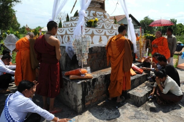 라오스는 전체 인구의 약 60%(2022년 기준)에서 66%(2010년 기준) 정도가 불교를 믿으며 소승불교가 가장 일반적인 분파이다. 불교에서는 환생을 믿으므로 장례식은 우리나라처럼 곡소리가 나는 슬픈 장면보다는 고인을 잘 보내드리고자 하는 의식인 듯하다.