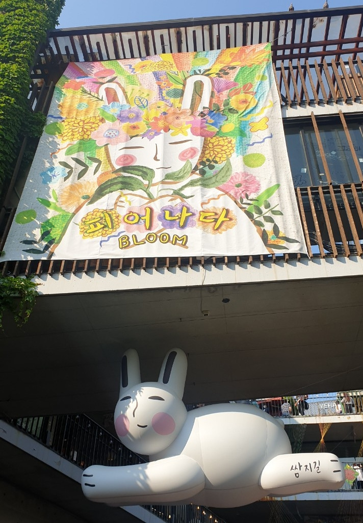 점점 올라가자 쌈지길 풍경이 한눈에 들어왔다. 아래서 볼 때보다 훨씬 멋지다. 이곳은 10년 전의 모습과 크게 달라지지 않았다. 커다란 플래카드의 글자가 내 가슴에 조용히 들어온다.