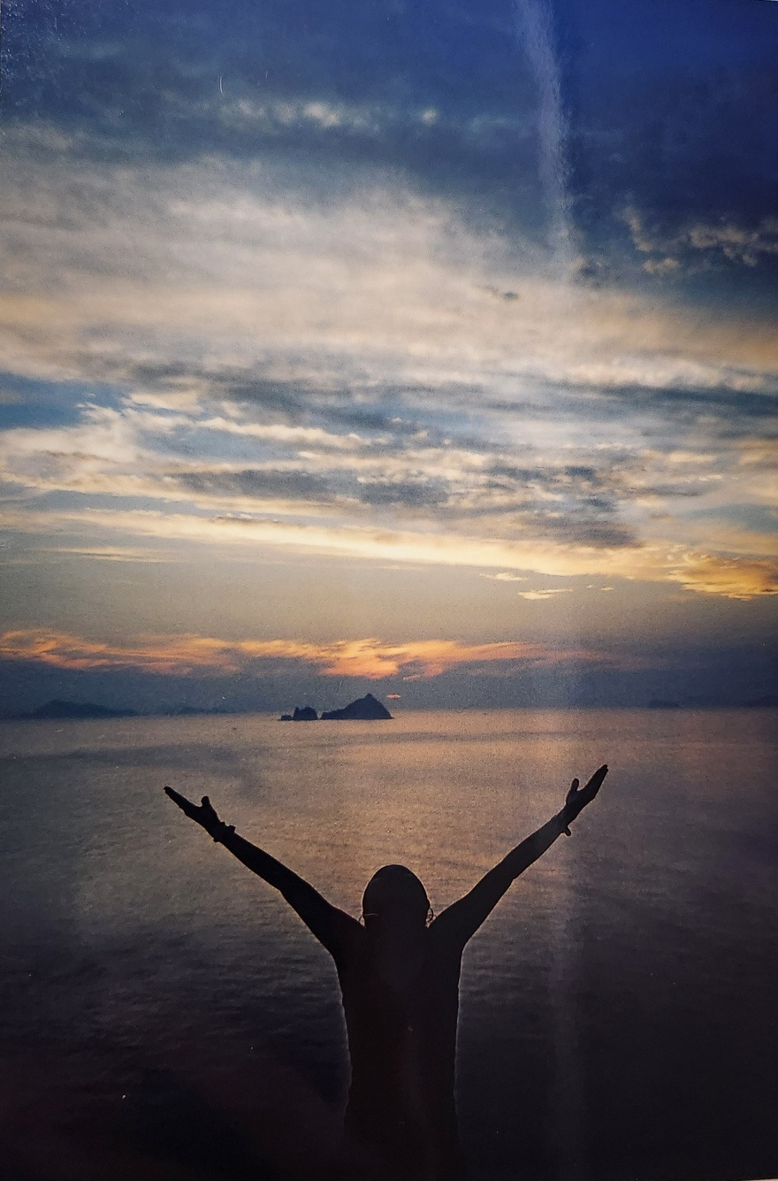 마지막 장소는 소매물도와 등대섬이었다. 국내 섬 중 최고의 비경을 자랑하는 곳으로 ‘제주도를 가느니 차라리 소매물도로 가겠다.’는 말이 있을 정도로 멋진 풍경이 일품인 곳이다. 배를 타고 도착한 소매물도는 여름의 싱그러운 초록빛과 바다의 깊은 파랑이 어우러져 마치 한 폭의 그림 같았다. 이른 저녁을 먹고 등대섬을 산책하다가 친구가 찍어준 사진은 내 인생 최고의 사진이 되었다. 두 팔을 벌리고 노을을 내 안에 담는 모습은 한 편의 작품이라 해도 손색이 없었다.