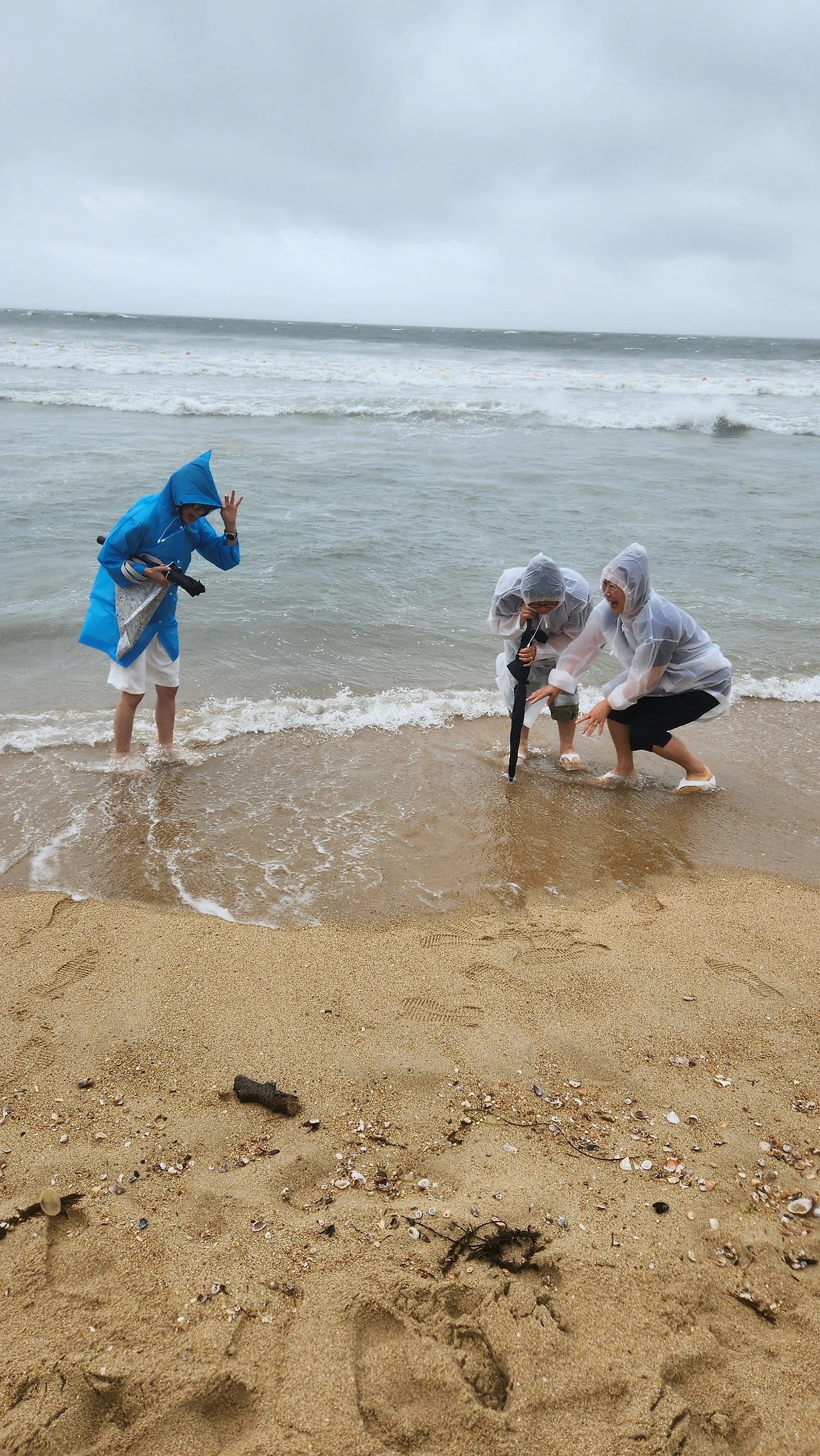 비바람이 강하게 불지만, 해운대를 걷고 싶다며 아침부터 나간 안작가님, 신작가2님, 늘해랑님, 최작가님. 강력한 비바람에 놀란 최작가님은 숙소로 바로 돌아갔다. 다른 3분은 기어코 바다를 보겠다며 성큼성큼 걸어갔다. 해운대 영화가 왜 나왔는지 알 수 있을 정도의 비바람 덕분에 옷과 머리가 엉망이 되어도 지금 이 순간을 즐기는 사람들이다. 그녀들과의 1박 2일은 웃음과 감사와 즐거움이 함께 했다.