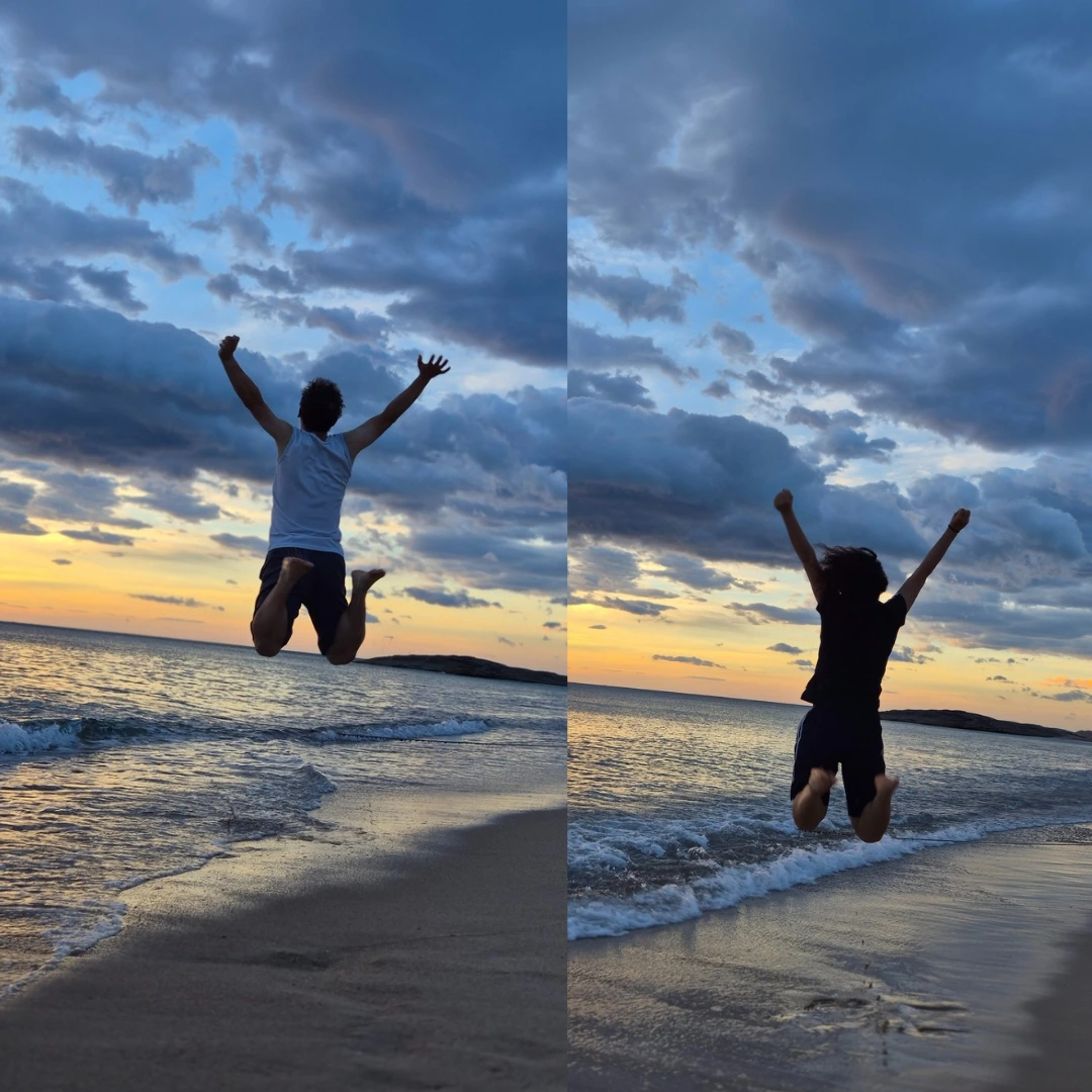 떠오르는 해를 보며 숙소를 보자, 부모님이 보였다. 우리가 즐기는 모습을 보며 미소 짓고 있을 부모님께 손을 들어 흔들어본다. 우리를 발견하고 부모님도 손을 흔든다.
