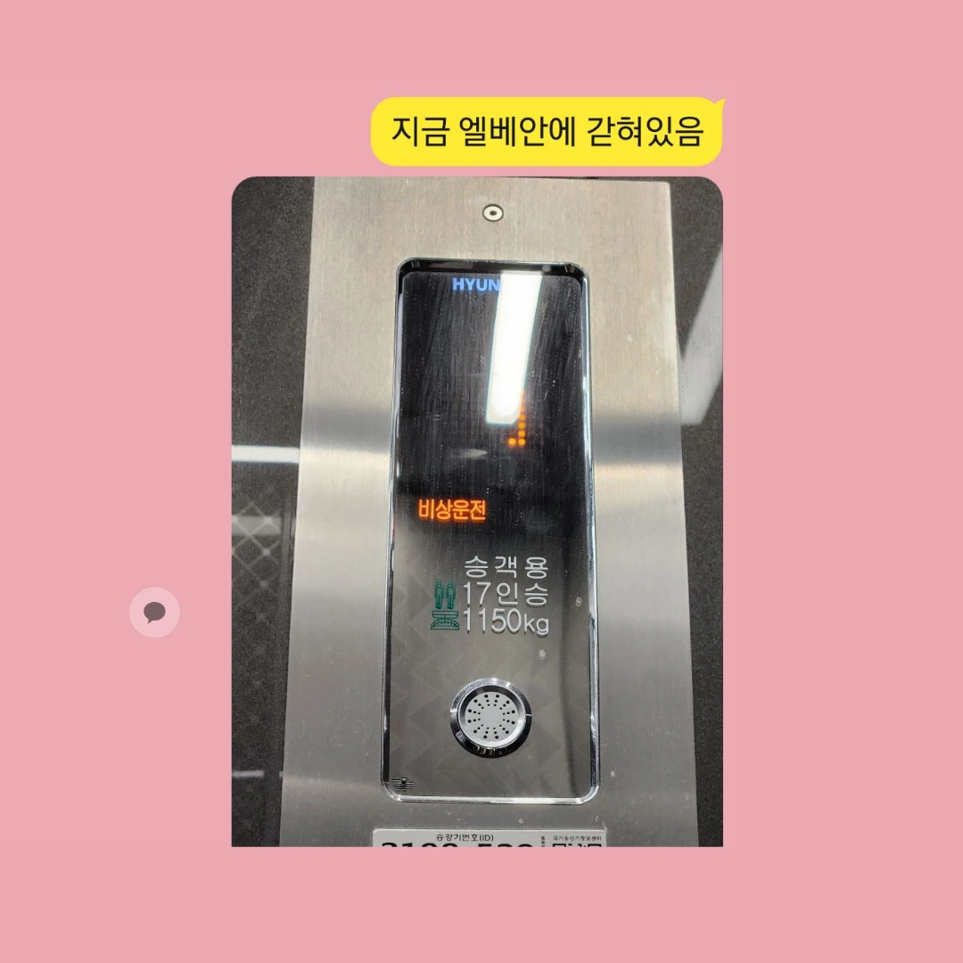 “아니요. 엘리베이터 안에 사람이 갇혔어요.”