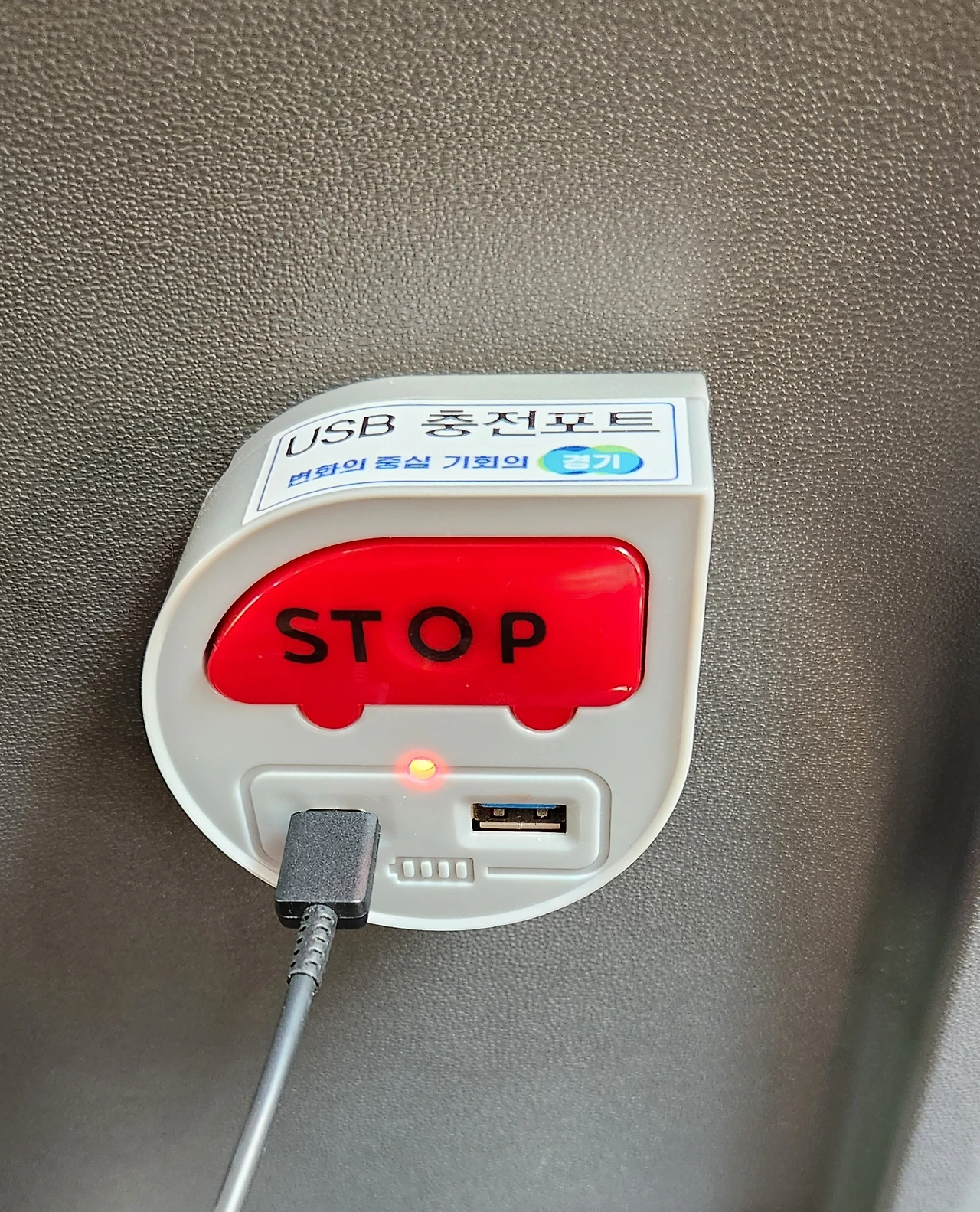 전시회 가는 날이다. 설레는 마음으로 아이와 함께 버스를 탔다. 아니 이럴 수가. 언제 이렇게 바뀌었을까. 버스 안에서 충전이 가능하다. 무료 와이파이가 된다. 자차로 다니다 보니 세상이 이렇게 바뀐 줄도 모르고 있었다. 아이보다 내가 더 신기해서 버스 이곳저곳을 관찰했다. 자리마다 충전기가 있다 보니 자기 자기에서 벨을 누룰 수 있다. 같이 버스 안에 있던 사람들은 우리가 다른 세계에서 온 줄 알 거다.