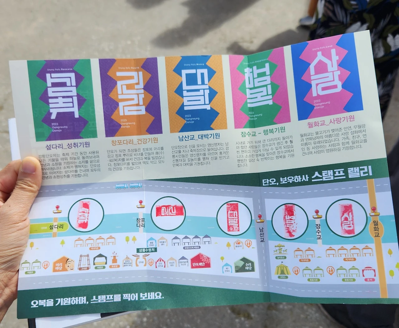 다음날 스탬프랠리 럭키박스를 받기 위해 8시에 단오종합안내소에 도착했다. 매일 선착순 60명에게 선물을 준다. 내 차례는 20번째다. 갖고 온 의자를 펼쳐놓고 한 시간 동안 나만의 독서를 했다. 9시가 되자, 럭키박스를 나눠주었다. 경기도에서 여행 왔다는 말에 즐거운 여행되세요. 인사를 건네신다. 그 말이 참 정겹다. 날이 점점 더워진다. 낮에는 다니기 너무 힘들 것 같다.