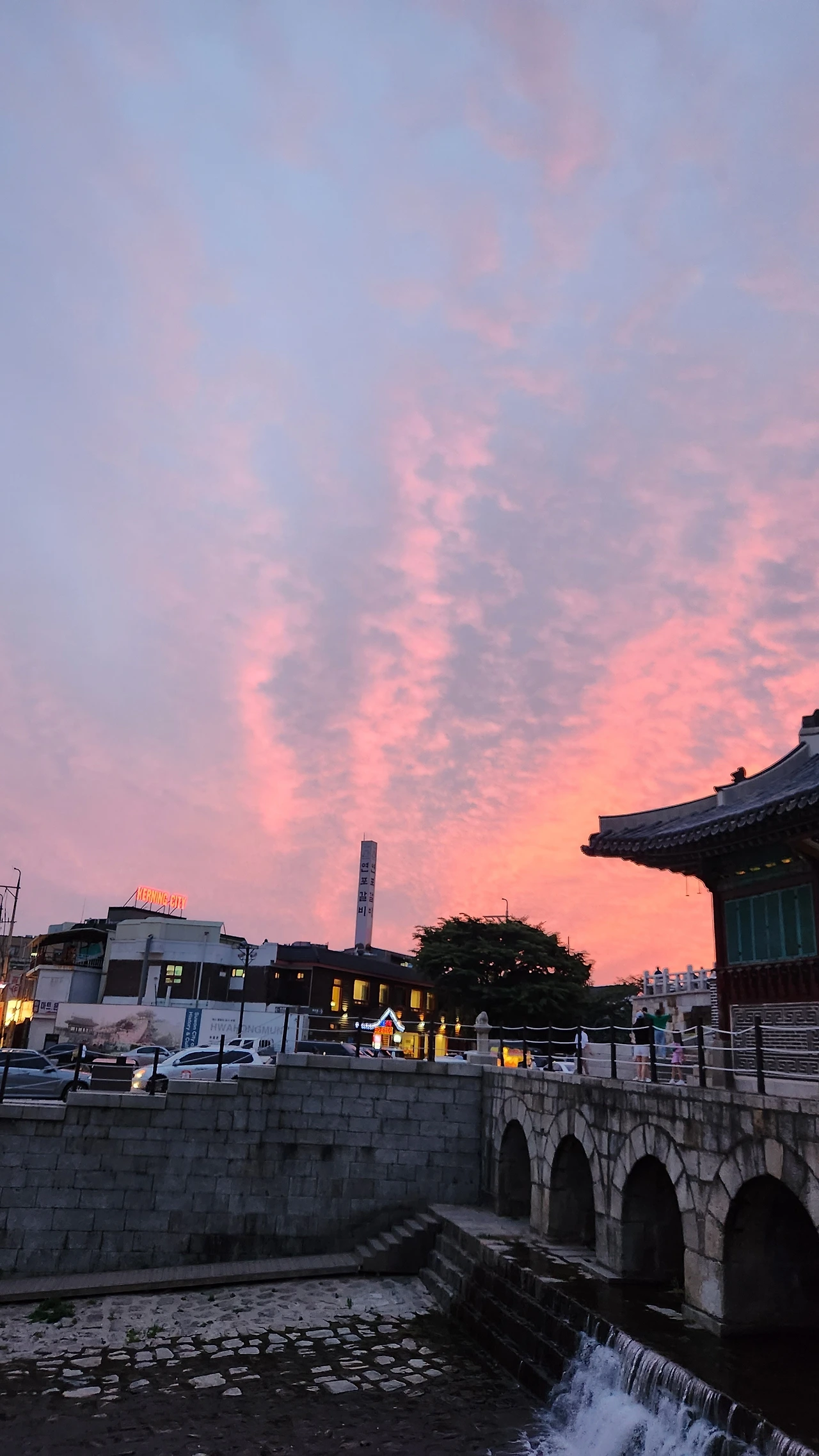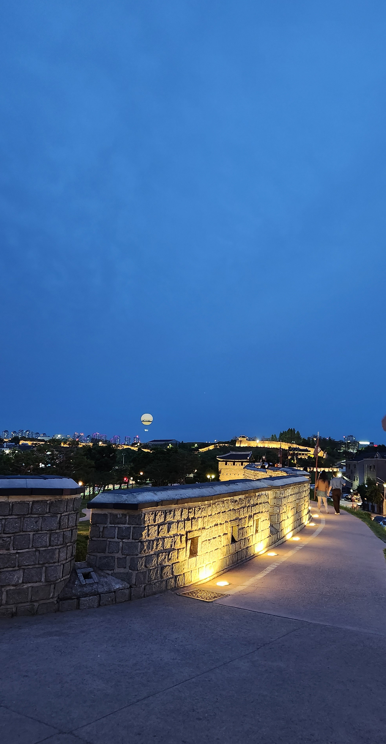 다시 장안문에서 연무대까지는 돌아올 때는 8시 반이 넘어 성벽이 아닌 도로를 걸어왔다.돌아오는 차안에서 아이와 퀴즈를 내며 본 것을 다시 떠올려 본다. 이렇게 아름다운 곳이 근처에 있음에 감사하다. 이렇게 모녀의 데이트는 끝이 났다.