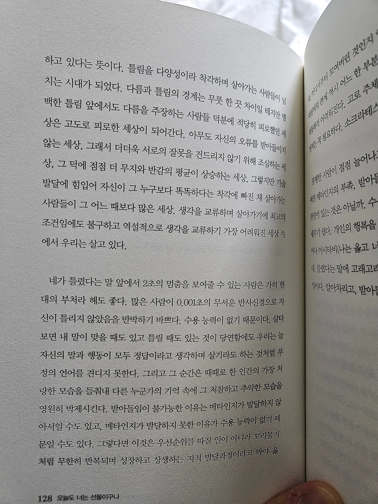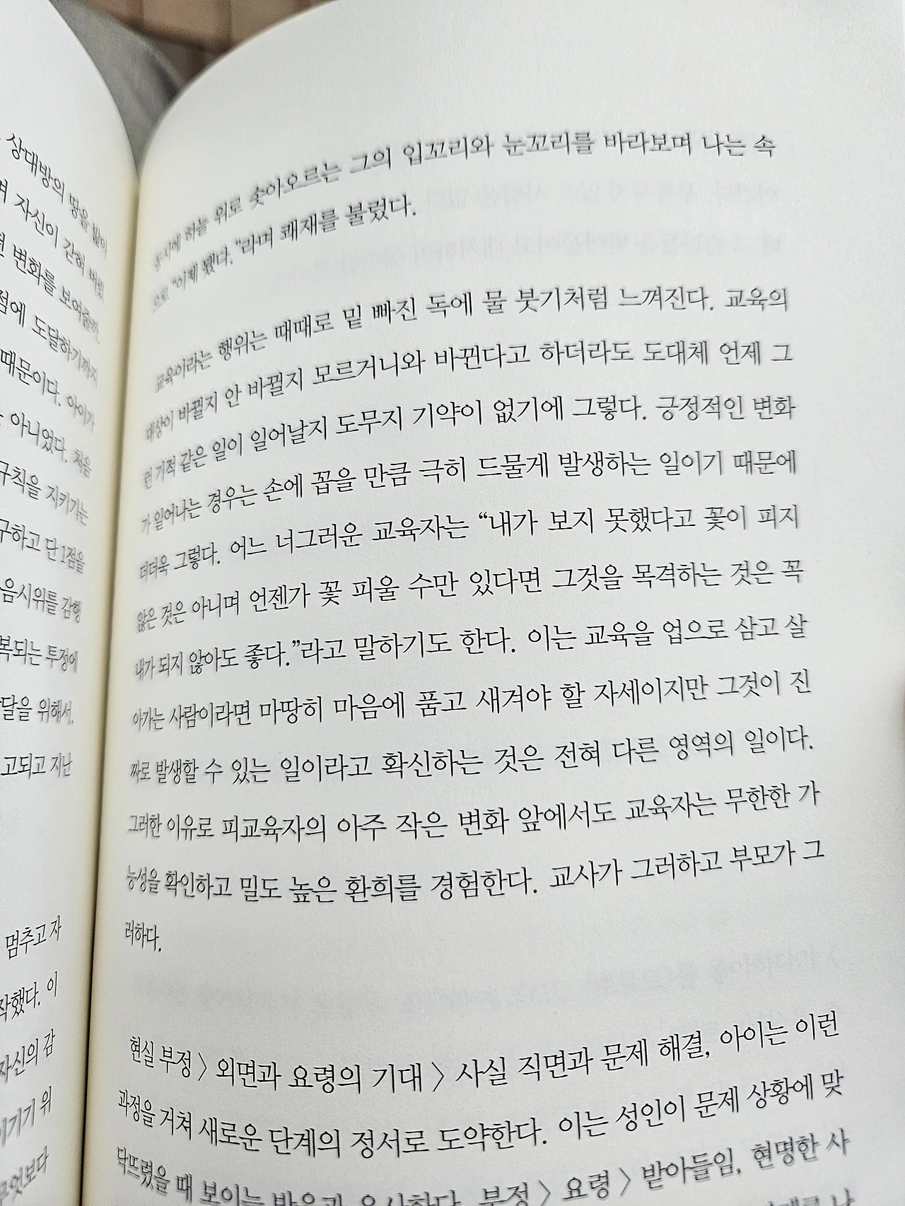 책 속에서 작가는 때로 아이에게 틀렸다는 말을 들을 때 2초의 멈춤을 할 수 있는 어른이 되고 싶다고 말한다. 그 장면에서 나는 잠시 읽기는 멈추게 되었다. 나 역시 그 짧은 침묵 하나를 잘 지켜내지 못해 버럭 하거나, 아이의 마음을 놓쳐버린 적이 얼마나 많았던가.