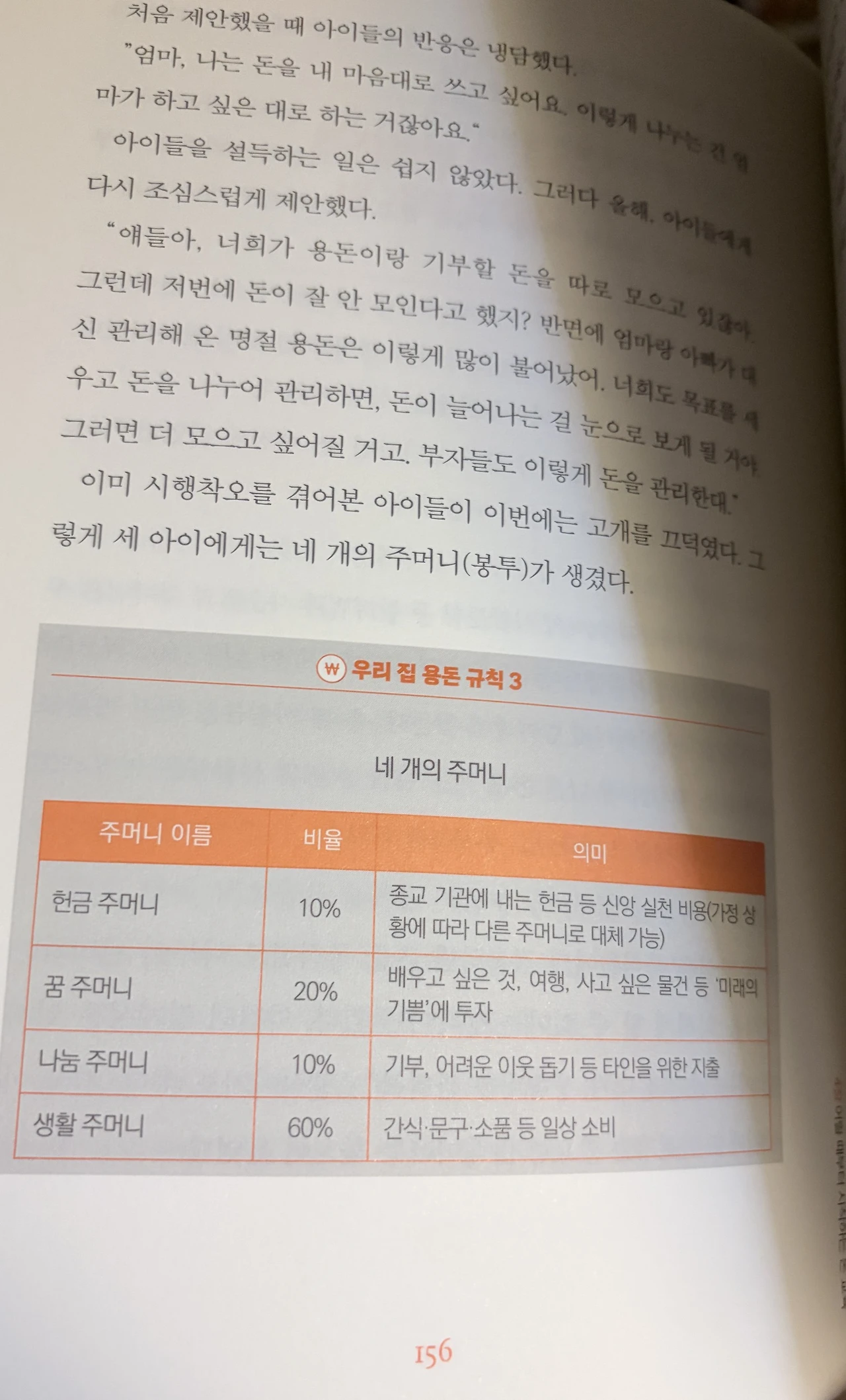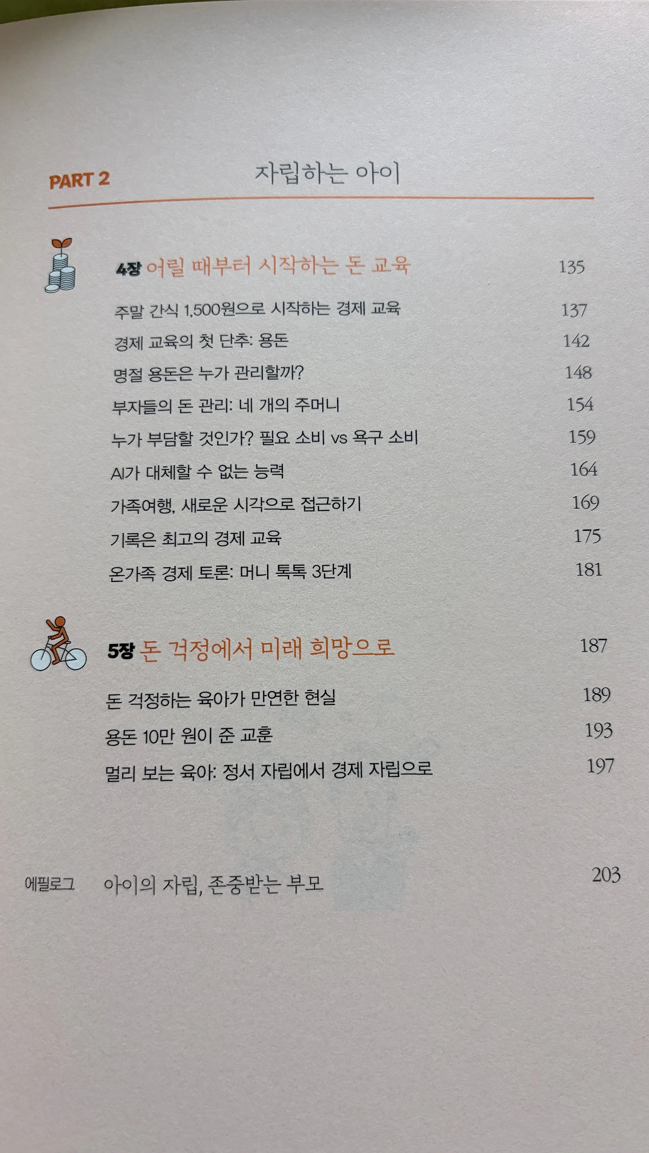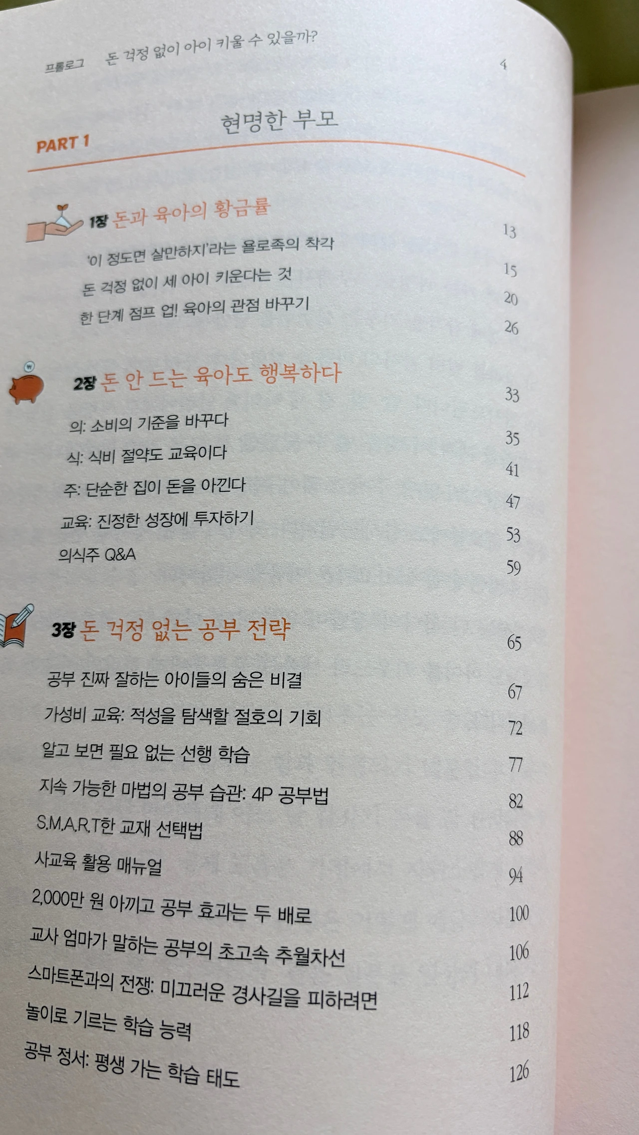나는 이 책을 이틀 만에 다 읽었다. 이 책은 200페이지가 넘는, 결코 얇지는 않은 책이다. 하지만 목차를 펼칠 때의 예감처럼 책장이 술술 잘 넘어갔다. 내용이 쉽고 머리에 잘 들어온다. 작가의 비범한 능력을 과시해서 읽는 이의 마음을 불편하게 만드는 것도 없다. 다만 작가의 예시를 통해 우리집에서는 어떻게 할 수 있을까를 그려보도록 돕는다. 나는 머릿속에 깊숙이 박힌 것은 바로 적용해 볼 예정이고, 시간을 두고 적용해 보고 싶은 것들은 찬찬히 빌드업을 시도해 보려고 한다. 안방 책장 잘 보이는 곳에 책을 꽂아두고, 다시 돈 걱정이 올라오려고 할 때마다 필요한 부분을 찾아서 읽을 생각이다.