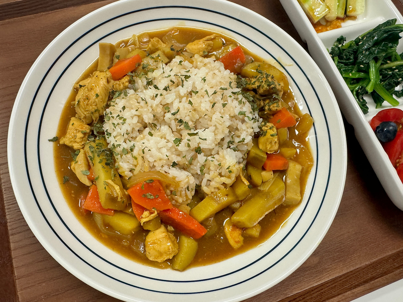강황에 대한 막연한 믿음이 있다. 왠지 모르게 강황이 들어간 카레는 몸에 좋을 것 같은 느낌적인 느낌? 나 역시 그랬다.검색해 보니, 역시나 카레의 주요 성분인 강황이 항염증의 특성이 있어 피부 염증을 줄이는 데에 도움을 줄 수 있단다. 물론, 직접적인 도움이 된다는 연구는 없지만 특별히 나쁘지 않다니 통과다. 시중에 파는 카레 가루 중 인공첨가물이 최대한 적게 포함된 제품을 선택해 조리하기로 결정이다. 퍽퍽하지 않은 닭안심과 각종 채소, 마늘 듬뿍 넣어 보글보글 한 그릇 완성. 닭고기와 잘 어울리는 고구마를 넣었더니 달콤하고, 부드러워서 아이 둘 다 두 그릇 뚝딱이다.