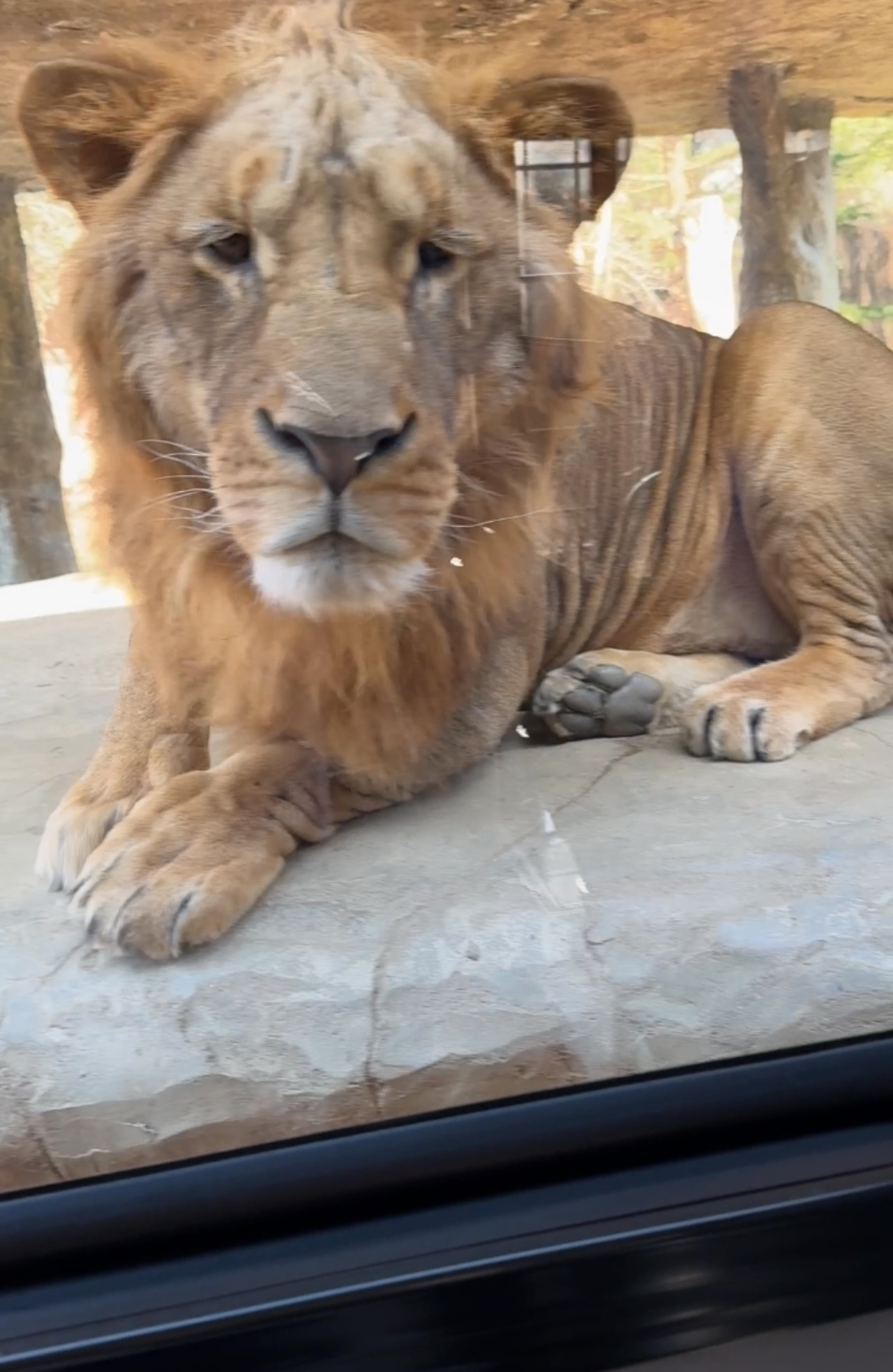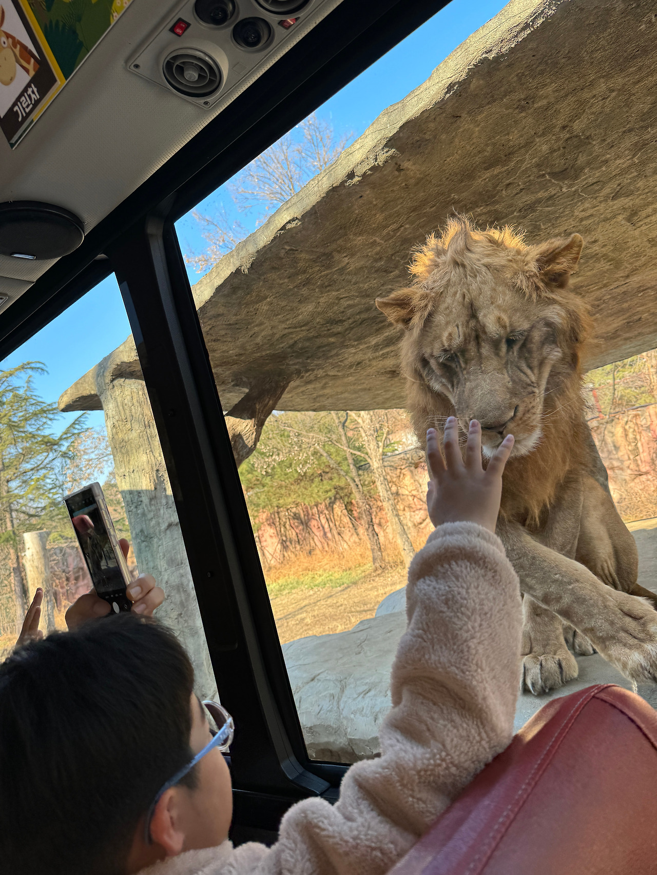 "지금 보이는 친구가 로키입니다. 이 사자는 우리 동물원에서 태어나 사람 손에 자란 사자로, 사람을 굉장히 좋아하고 관심도 많아요. 자, 그래~ 옳지. 여러분 로키야 안녕! 하고 손을 흔들어주세요. 자, 그럼 다음 동물을 보러 가 볼까요."
