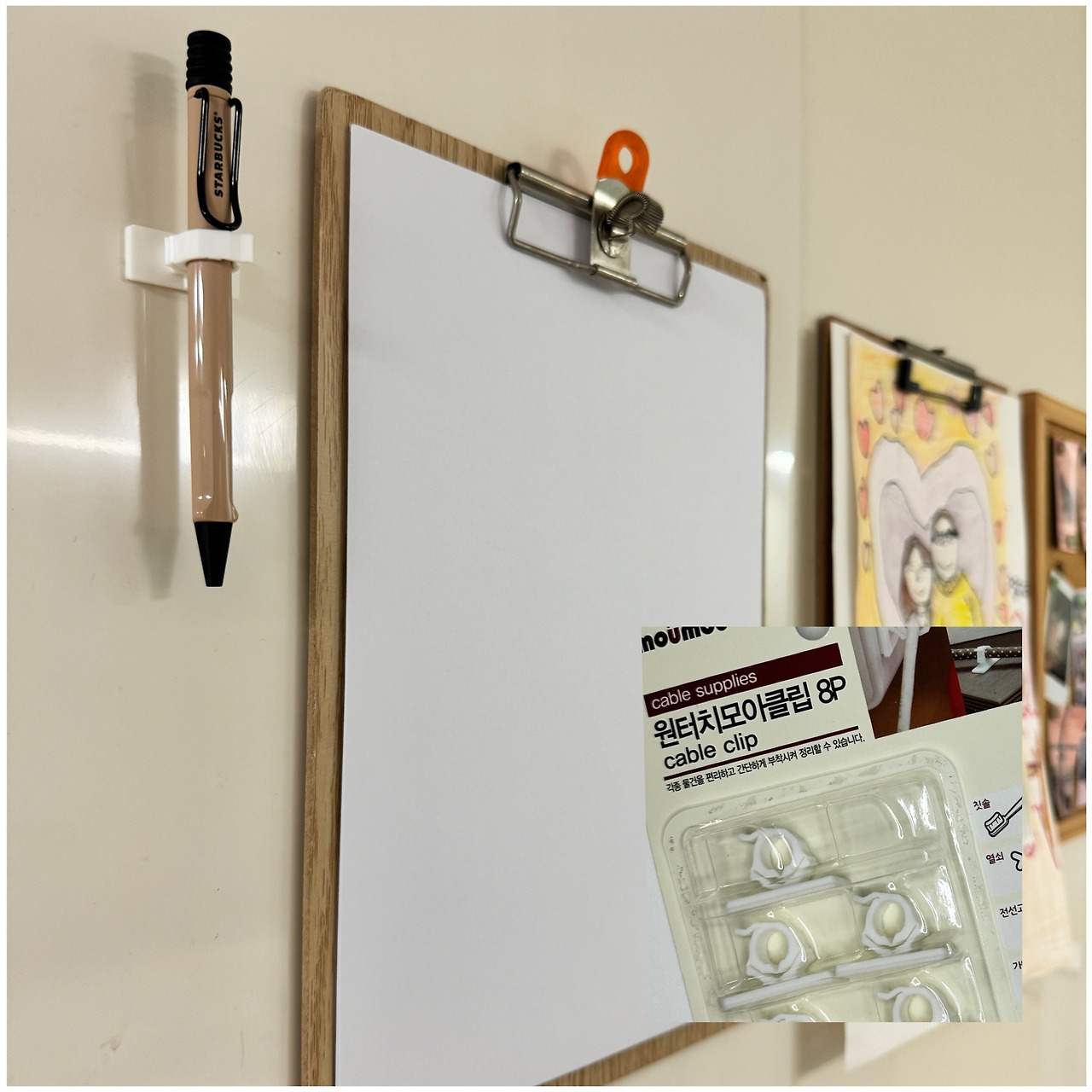 입구를 열었다 다물었다 할 수 있기 때문에 펜을 보관하거나, 청소용 칫솔을 보관할 때 아주 유용하다. 특히 주방 벽면에 붙여놓은 메모판 옆에 클립을 이용해 펜을 걸어두니 급하게 전화통화 중에 생기는 메모거리, 장 볼 것들, 순간순간의 TO DO 리스트를 적기에 아주 좋다. "펜이 어딨지? 잠시만요!" 이런 아쉬운 양해의 말을 하지 않아도 된다.