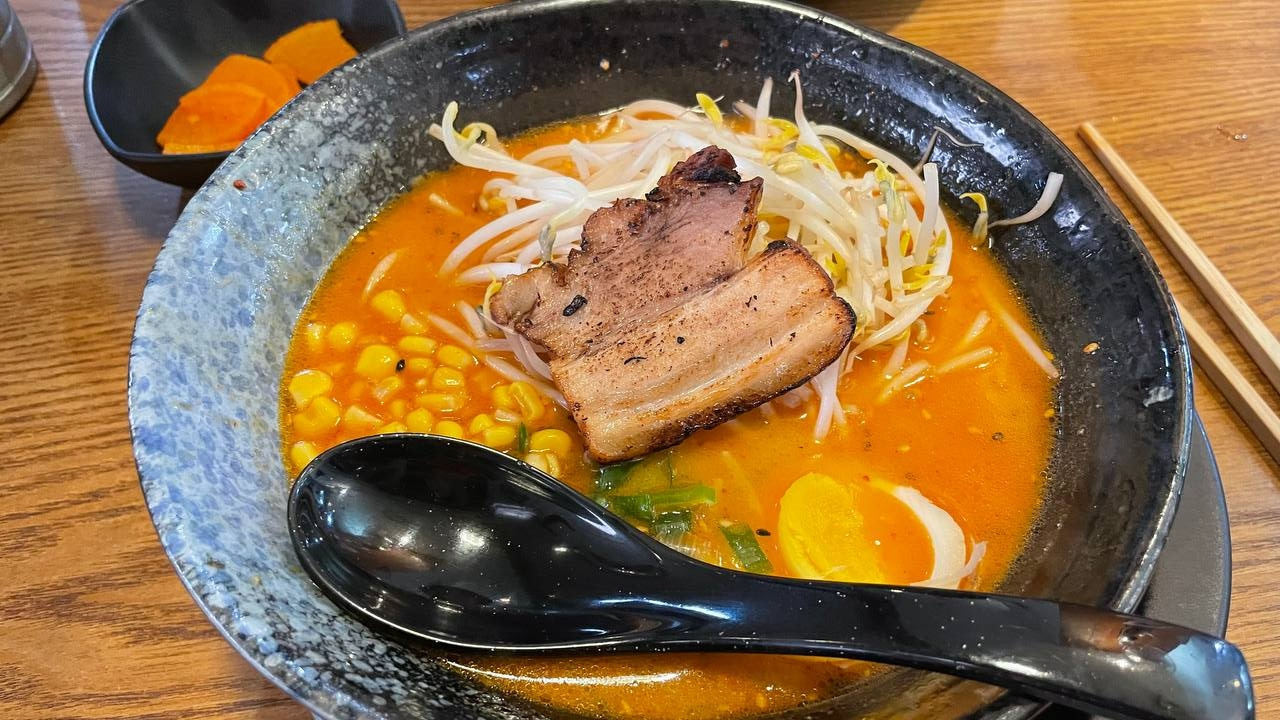 차슈를 구워서 고명으로 올린 산쪼메 라멘.