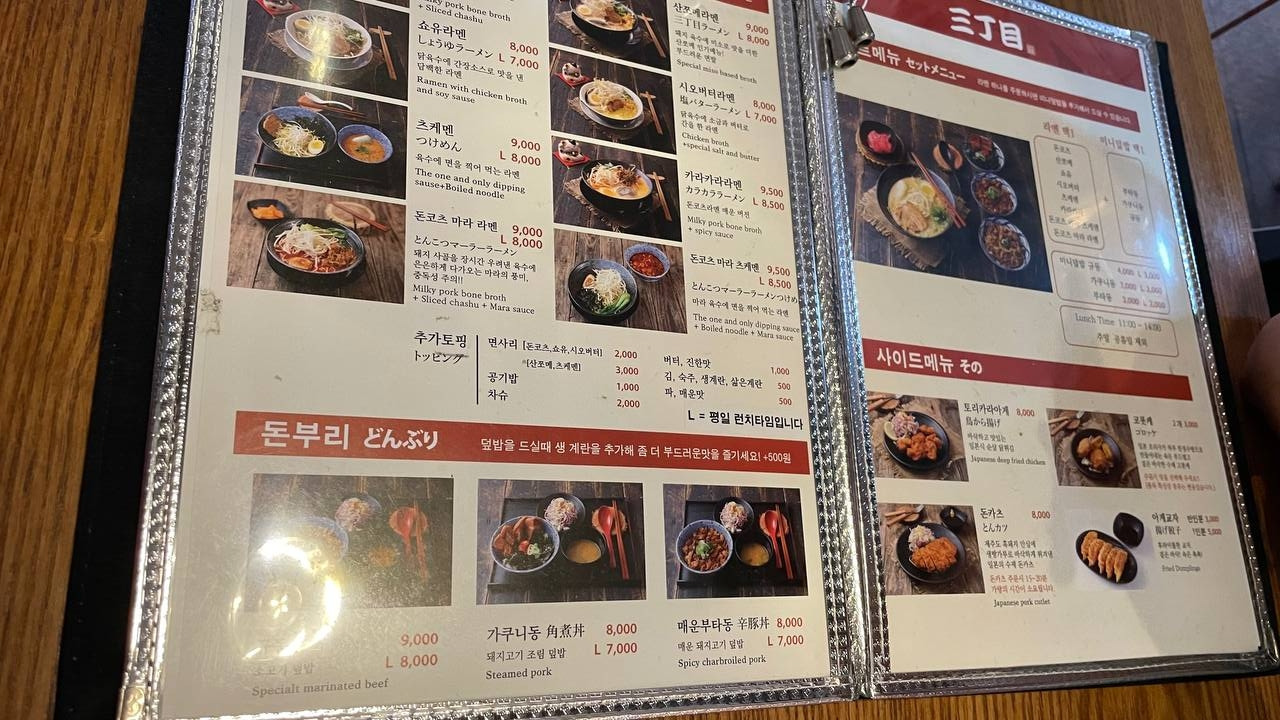 서로 다른 메뉴를 시켜 두가지를 맛볼까도 생각했지만, 오롯이 내그릇을 먹고 싶어서 시그니처 메뉴인 산쪼메라멘 보통 하나, 곱배기 하나를 주문.