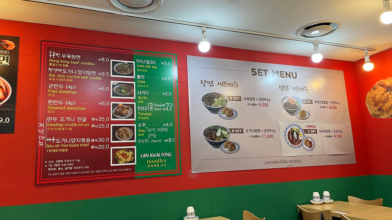 군만두가 2개씩 곁들여진 우육탕면 A세트와 도가니탕면 B세트로 결정.