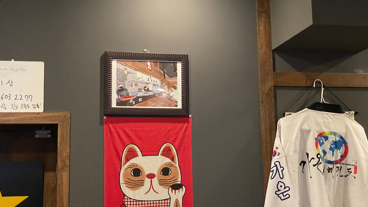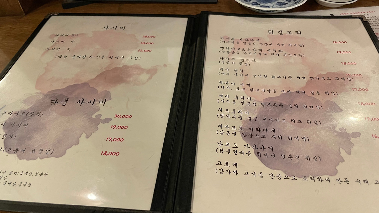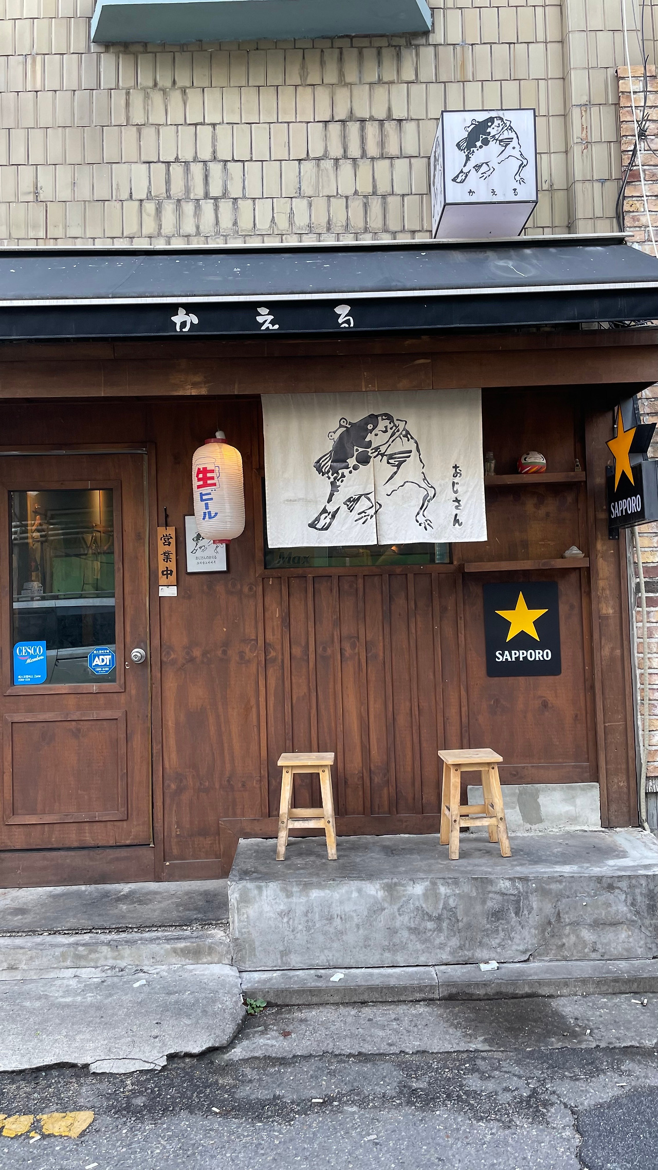 추천 메뉴를 과감히 건너뛰고 카에루 가라아게(개구리를 일본식 간장에 재워 튀겨냄)를 주문하려고 했는데 주인장이 개구리가 다 떨어졌다고 한다.