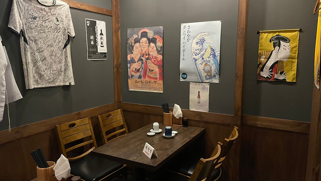 오지상노카에루의 출입문을 열고 들어가니 사장님이 예약했는지 물었다.