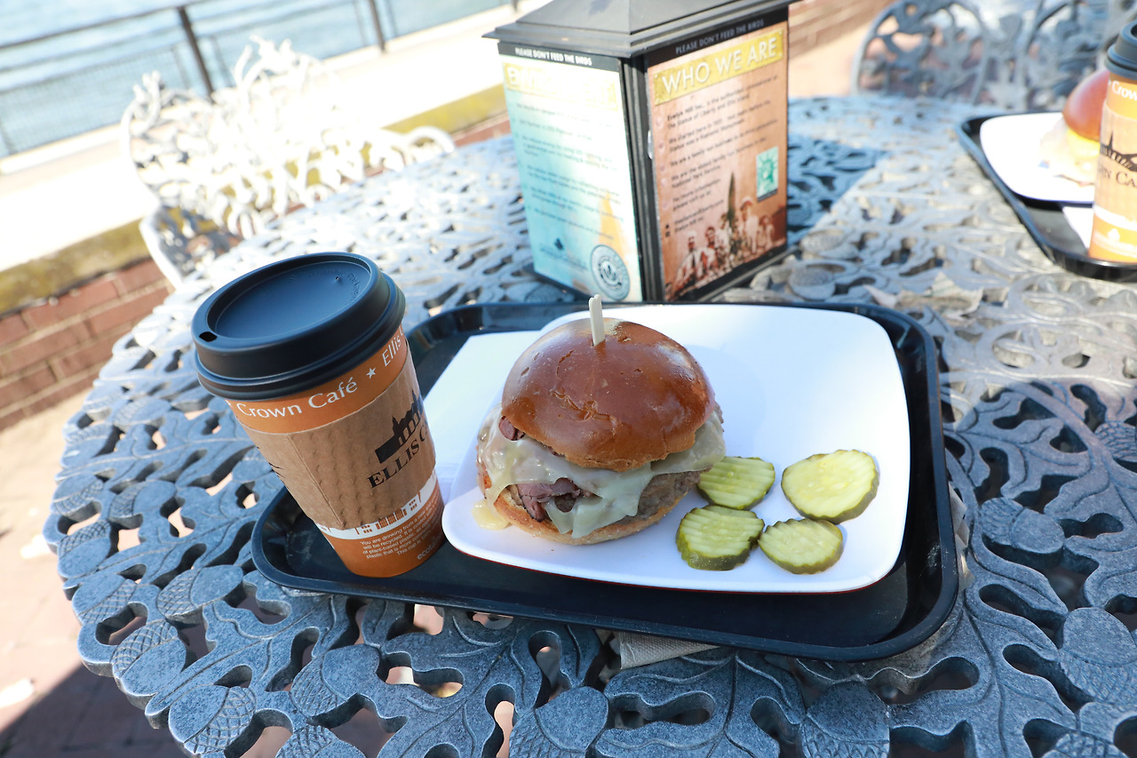 자유의 여신상의 섬인 리버티 섬을 떠나기 전, 유람선을 타기 위해 아침 일찍 서둘렀던 터라 배가 고팠다. 섬에 있는 카페테리아에서 햄버거 2개에 커피 2잔을 주문하고 값을 지불하니 30.50 달러, 한화로 4만 5천 원이 넘는 금액이다. 하루 새 물가에 적응했는지 뉴욕에서 이만하면 싼 거 아닌가 싶었다. 게다가 피클도 4개나 공짜로 줬으니까.