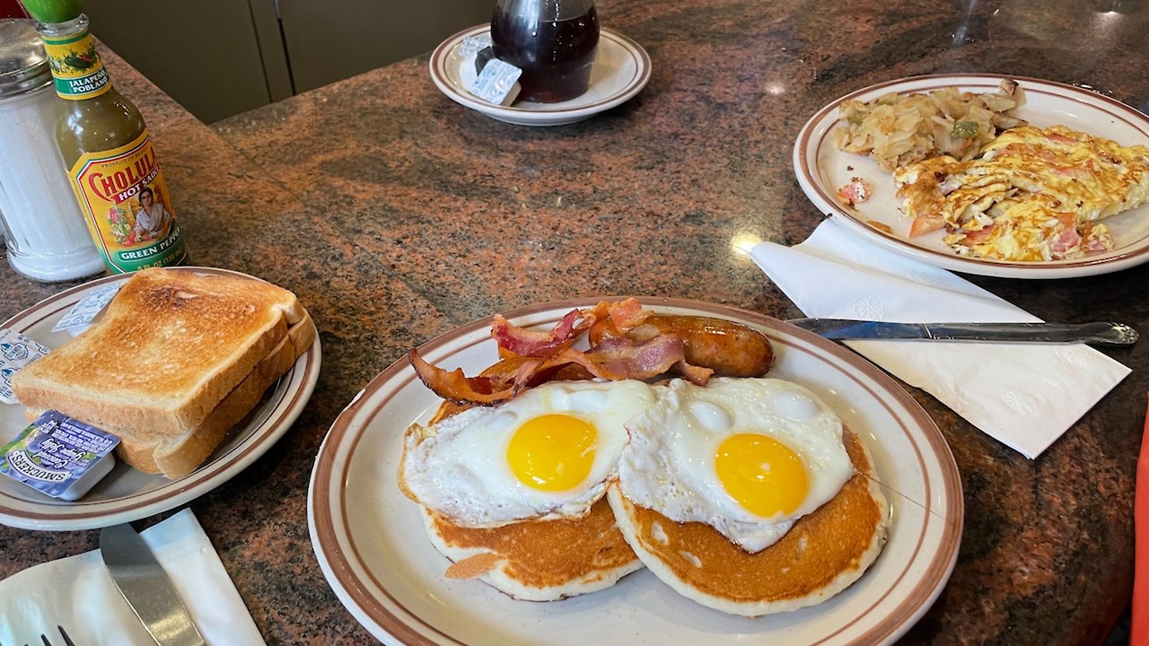 현금만 받는 식당이 있었는데, 무려 백종원이 소개한 미국식 아침 식사를 먹을 수 있는 곳이었다.