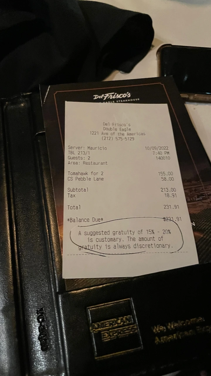 서빙을 해주는 식당에서는 테이블에 앉아서 계산을 하는데 음식값을 먼저 지불하면 웨이터가 팁이 표시되어 있는 영수증을 갖고 온다. 원하는 팁의 퍼센티지를 선택하고 해당 금액을 더한 값을 최종적으로 영수증에 써서 웨이터에게 건네면 계산이 완료된다. 신용카드로 계산하는 경우, 팁은 당일에 결제되지 않고 며칠 후에 청구된다.