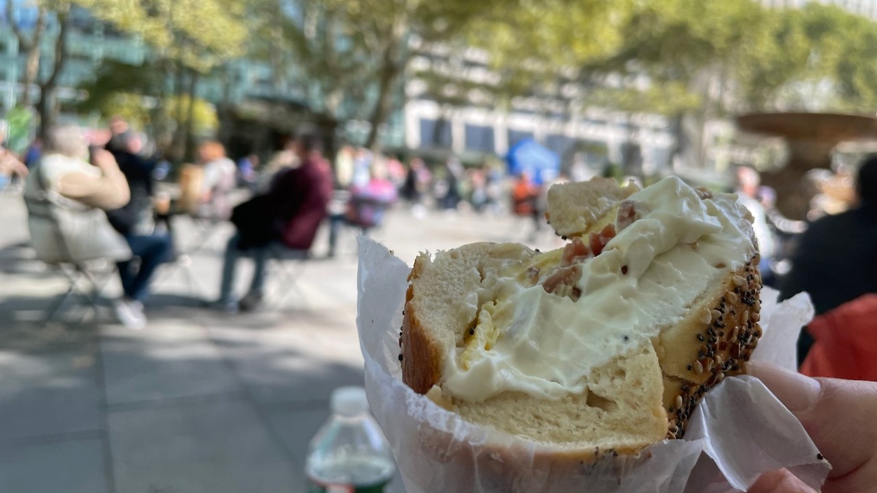 뉴욕 여행을 가보니 과연 그랬다. 정말 많은 사람들이 걸어 다니면서 먹거나 길거리에 벤치에서, 좀 격식을 갖춘다면 공원에 있는 테이블과 의자에서 식사를 했다.