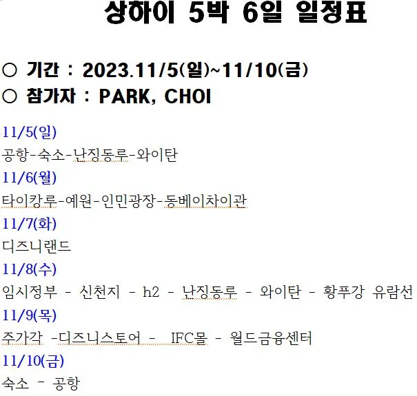 - 여행계획서 (아래와 같이 간단하게 씀)