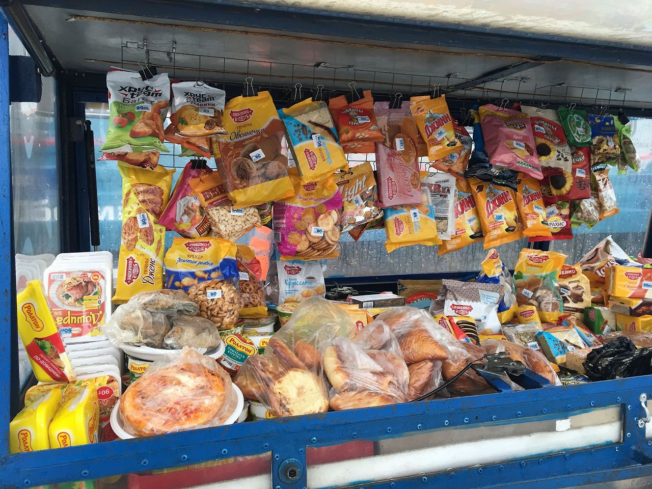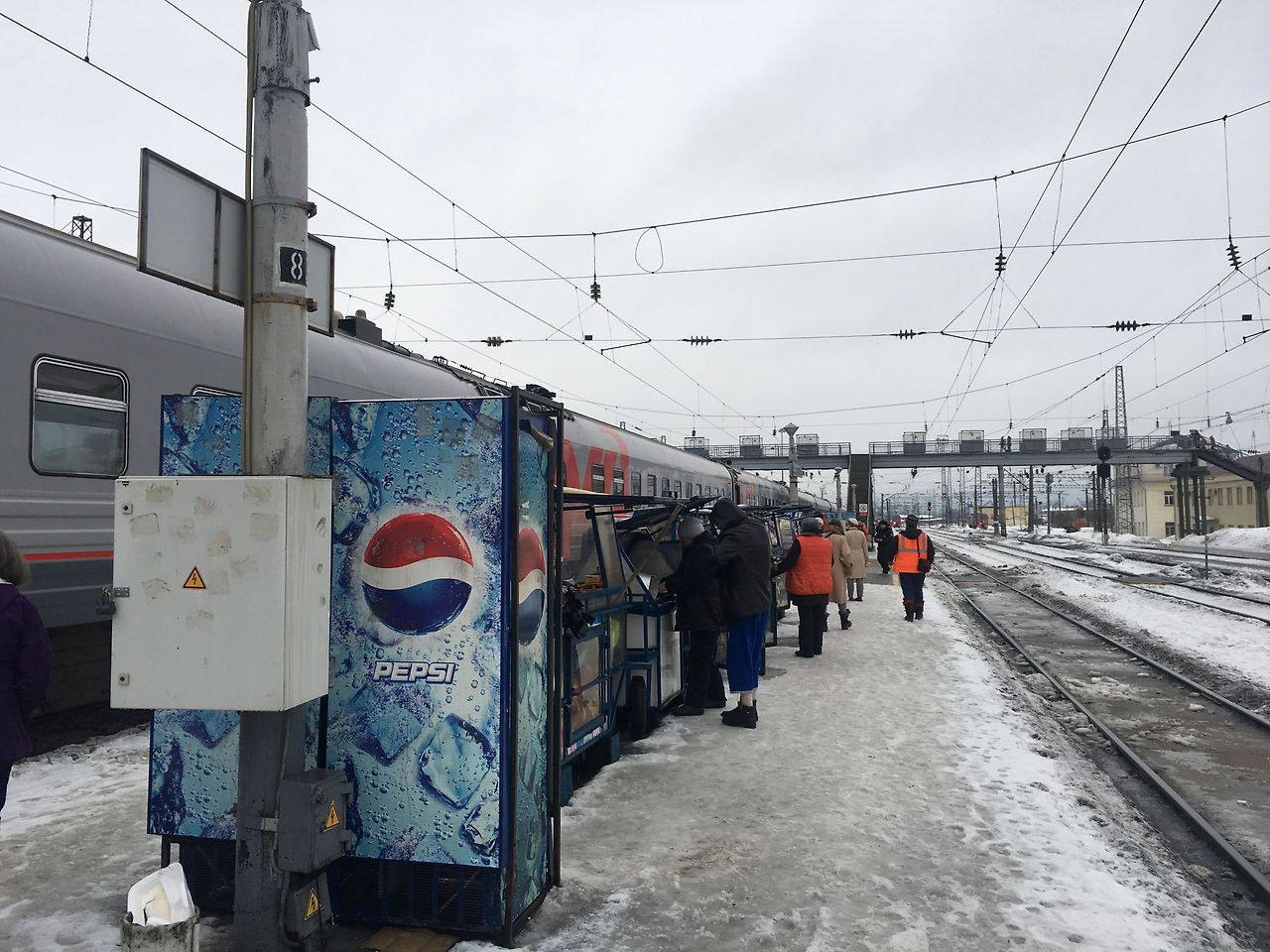 담배가 아니더라도 중간 정차역에 내려 스트레칭도 하고 간식거리나 물과 맥주 등 생필품을 구입해야 하기 때문에 열차가 언제 정차하는지 꼭 알아 둘 필요가 있다. 간이역 플랫폼에서 보따리 장사꾼들이 찐 감자나 직접 만든 만두, 빵을 팔기도 한다. 참! 러시아에서 물을 살 때는 꼭 "No gas!"라고 콩글리쉬를 외쳐야 한다. 탄산수가 디폴트 값이라서 물을 달라고 하면 탄산수를 준다. 탄산수를 즐기는 편이지만 기호 식품이지 갈증을 해소하기엔 왠지 부족했기에 꼭 "노 가스"라고 하며 물을 샀다.