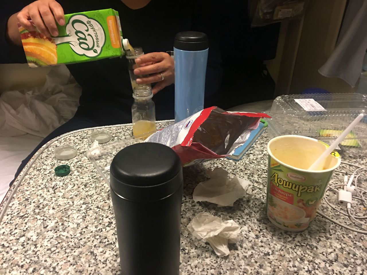 이르쿠츠크에서 블라디보스톡까지는 3등 칸을 탔는데, 2층에서 자는 것이 불편할 거 같아서 모두 1층으로 예약했다. 3등 칸은 일단 사람이 너무 많았다. 프라이빗한 공간도 당연 없다. 그래서 보드카를 주스통에 넣어 몰래 마셨다. 차장이 술 마시는 것을 조사하지는 않았지만 금지되어 있었기에 괜히 문제를 만들고 싶지 않았다.
