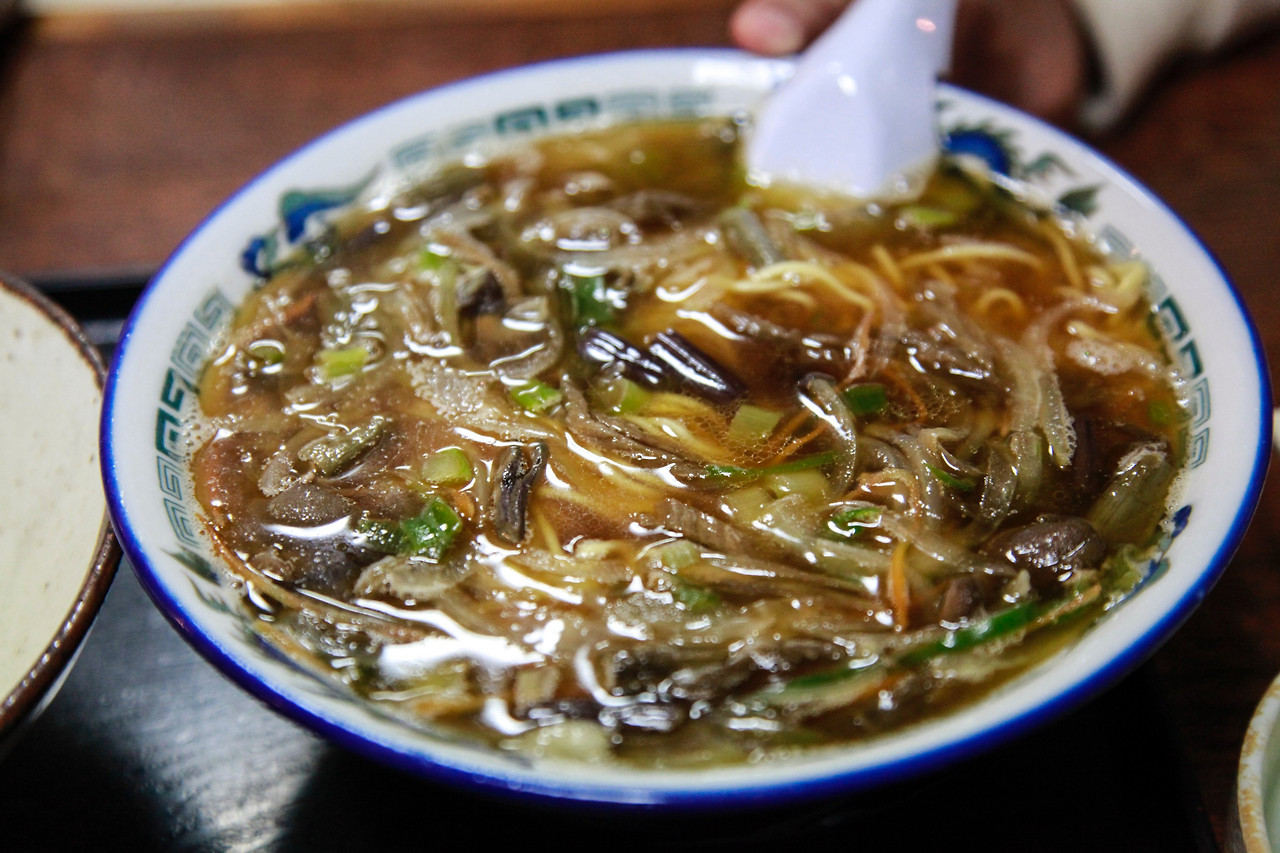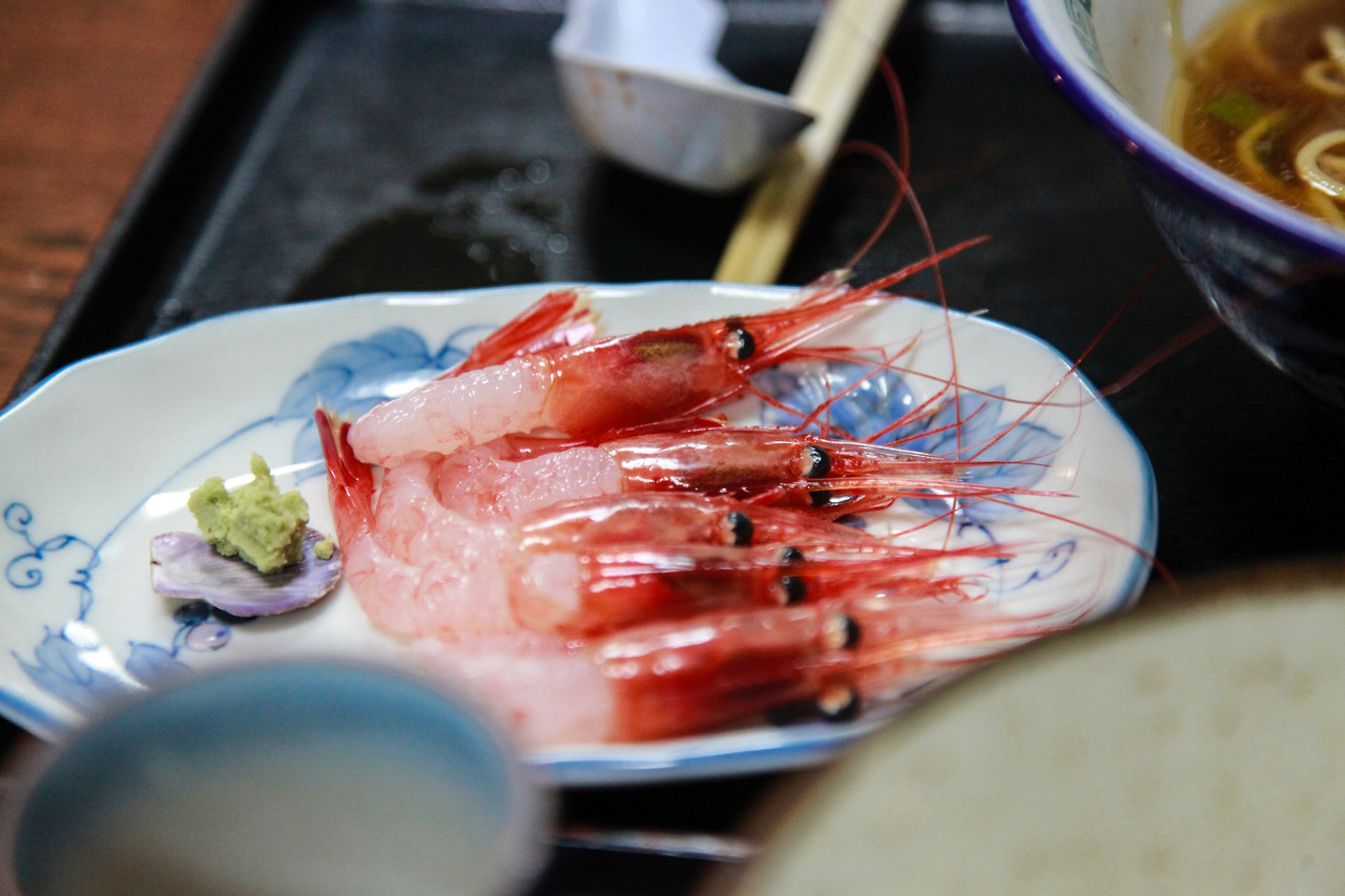 호텔 식당에서 저녁 식사로 스키야키를 먹고 술집을 찾아 밖으로 나왔는데 보이는 곳이 별로 없었다. 겨우 식당 하나를 찾았는데 林道食堂이라고 쓰여 있었다. 술안주로 시로가네 라멘을 시켜서 먹었는데 궁채 같기도 하고 고사리 같기도 한 나물이 듬뿍 들어 있어서 식감이 좋고 맛있었다. 주인장은 당일 낚시한 것이라며 생새우를 서비스로 주셨다. 말도 잘 통하지 않는 낯선 곳에서 이런 선물을 받으면 두고두고 잊지 못하게 된다.