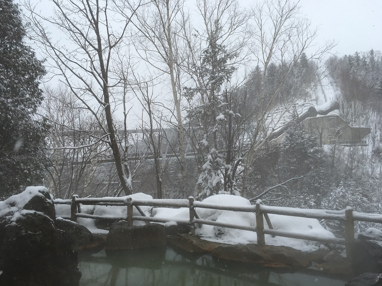 아침에는 눈을 맞으며 단독 온천을 즐겼는데 눈을 맞으며 온천하는 맛! 해 봐야 안다.