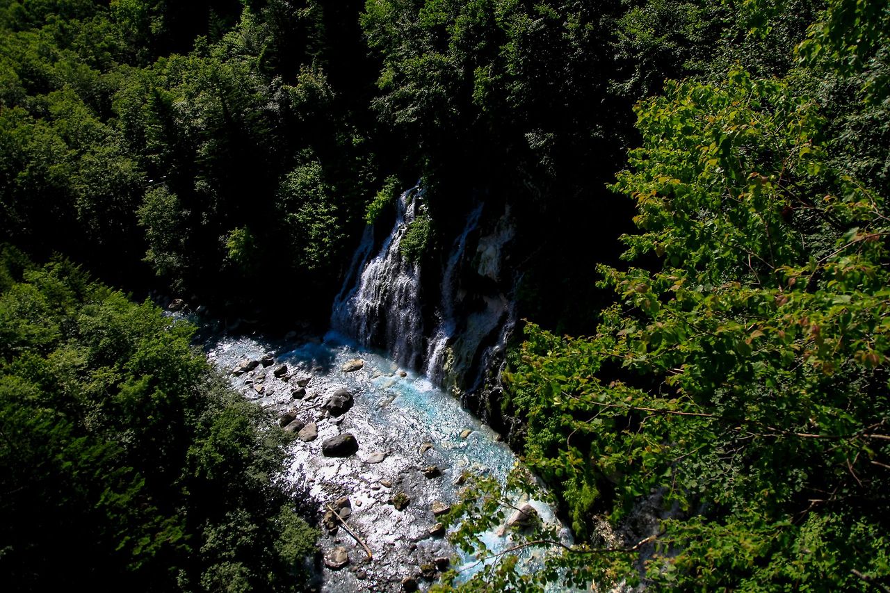 조식을 먹고 호텔 밖으로 조금 걸어 나오니 흰수염폭포가 보인다. 에메랄드 빛 물 색깔이 너무 영롱하다.