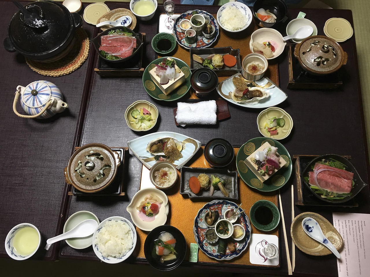 다음날 아침, 가이세키 조식도 상다리가 휘어질 정도로 나왔지만 비주얼만으로도 맛보고 싶은 요리가 많아 먹고 또 먹었다. (일본인이 소식한다고 누가 그랬나요?)