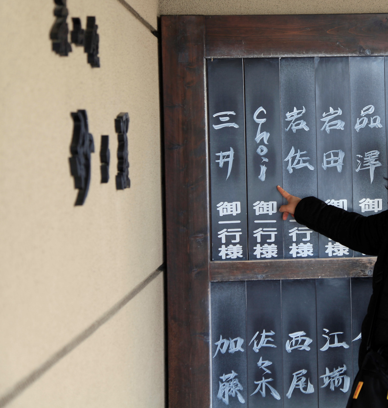 료칸 앞에 도착하자 환영 명단에 choi 라는 필기체가 최와 박을 맞아주었다. 한자 이름들 사이에 알파벳 choi 가 어색하게 끼어있었지만 료칸 측의 배려에 기분이 좋아졌다.