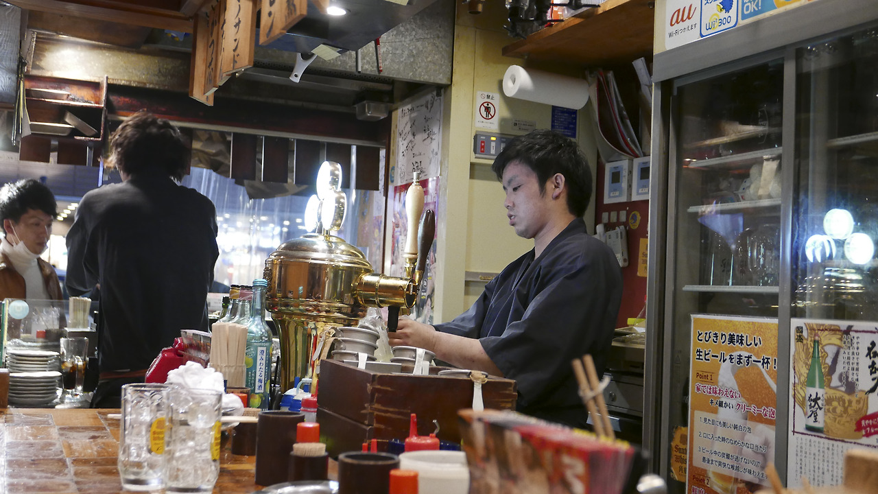 나고야의 우연한 기쁨은 다치노미(立ち飲み)이다. 일본에는 다치노미(선술집)가 많은데, 말만 선술집이 아니라 정말 술을 서서 마신다. 주방과 주방을 둘러싼 테이블이 술집 공간의 다인데, 집세가 비싸니까 발달된 형태가 아닐까 싶다. 또 일본에서는 혼밥뿐 아니라 혼술하는 사람도 많이 보였는데 혼자 한두 잔 하기에 다치노미는 딱이다.