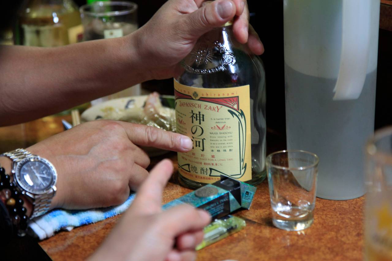옆 손님의 킵해둔 술병이 바닥이 나고, 손님은 기분이 업됐는지 한 병을 더 시킨다.