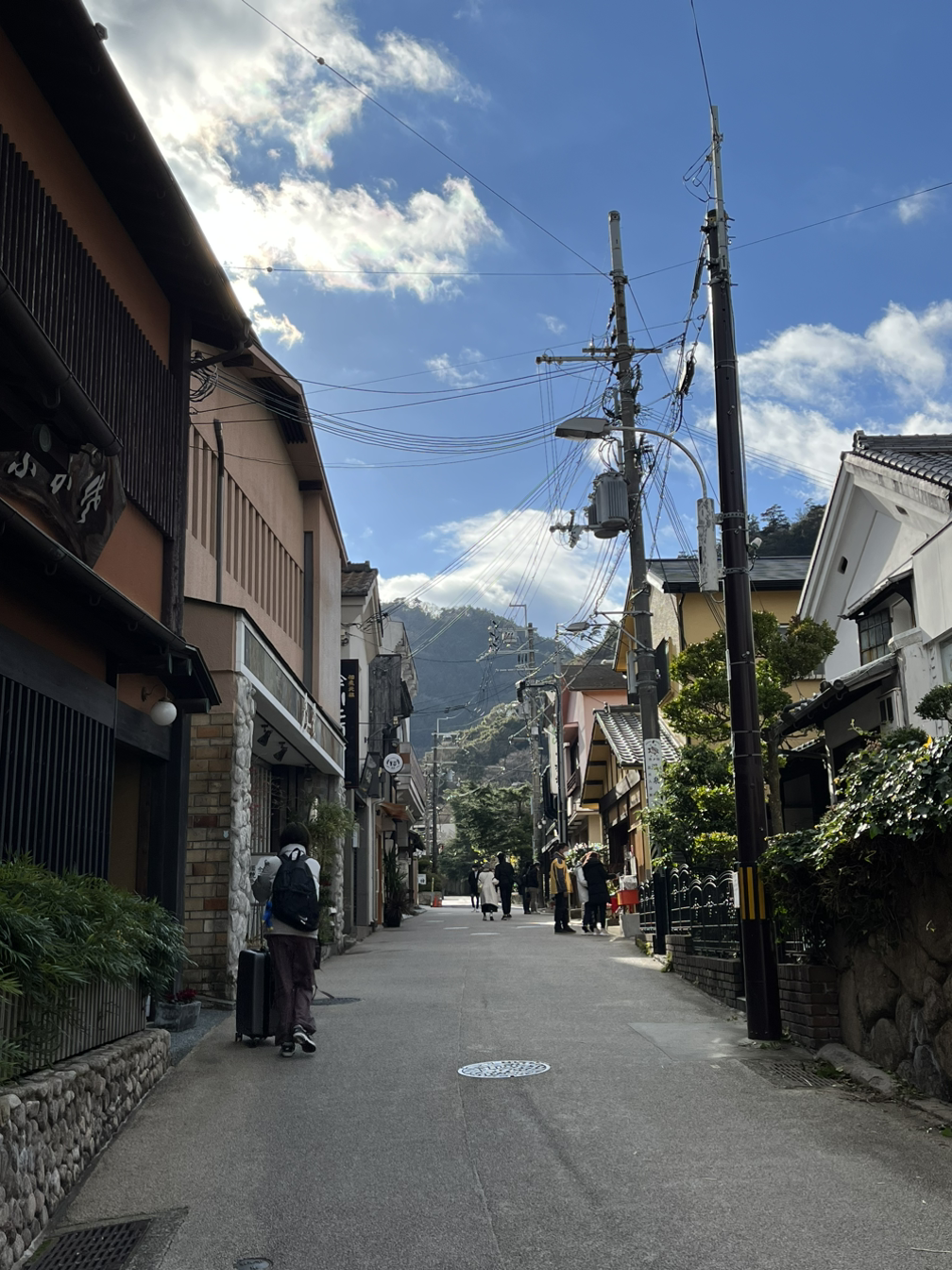 분명히 누군가의 후기에는 기차역에서 송영버스가 온다고 했는데, 무작정 기다릴 수도 없고 길도 멀지 않은 것 같아서 우리는 캐리어를 끌고 직접 료칸까지 가기 시작했다.