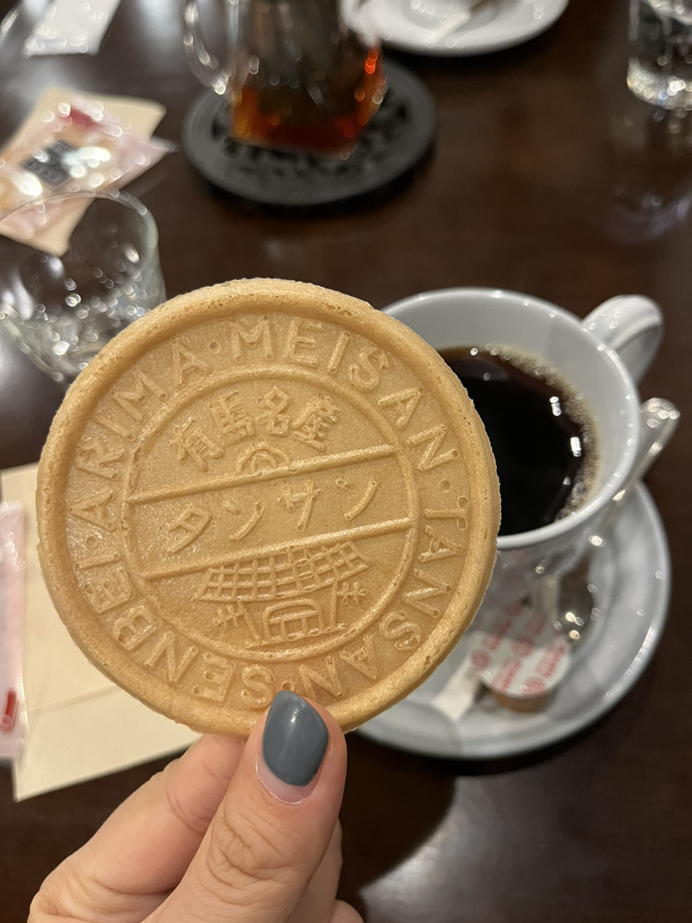 꼭 한번 먹어보고 싶어서 센베를 샀는데 , 알고 보니 이 동네 명물이라 카페에서도 하나 받고 나중에 료칸에서도 주시더라.