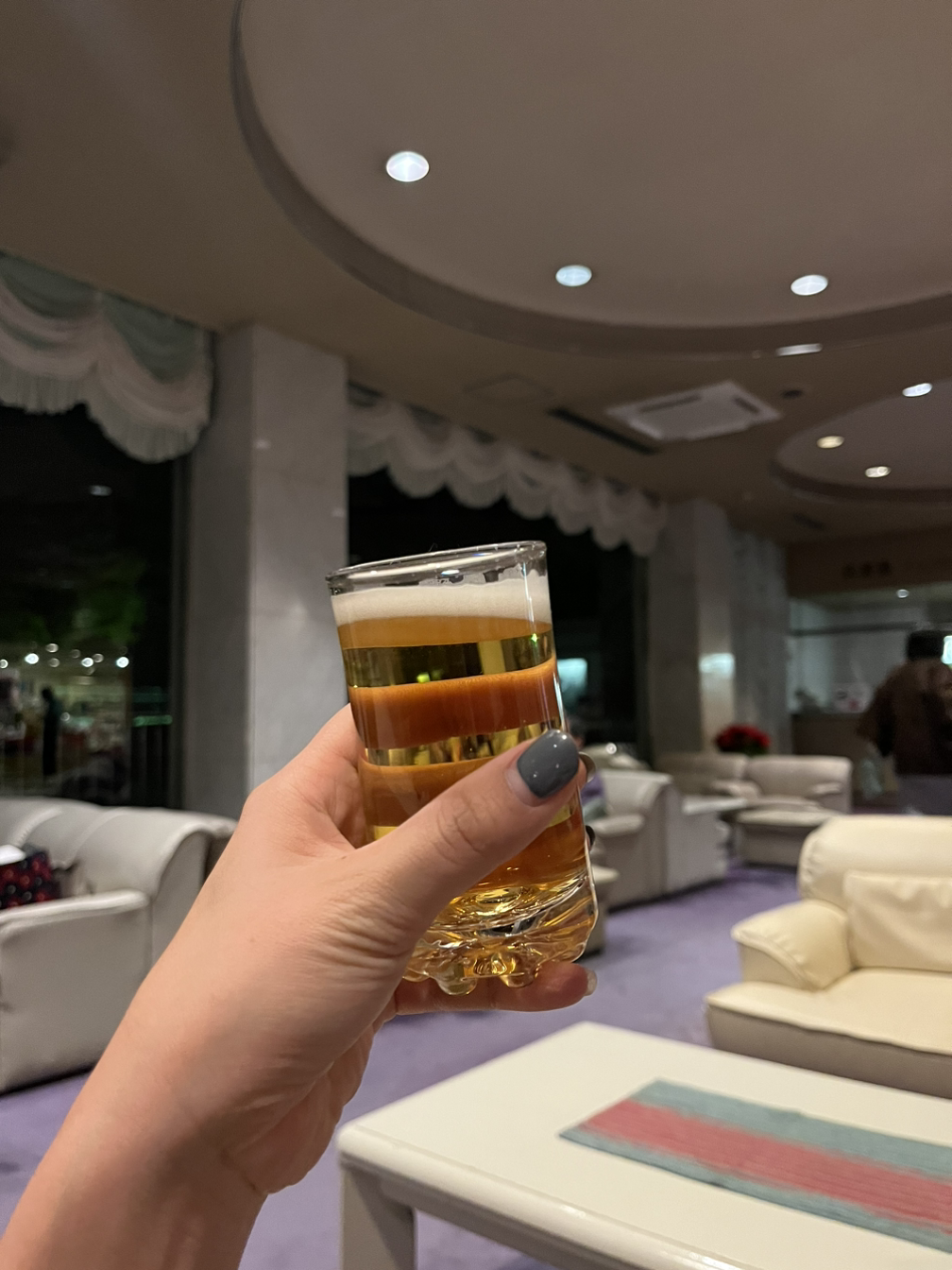 대욕장에서 온천을 하나고 내려오던 중 마친 해피아워라서 맥주 1잔을 했다.