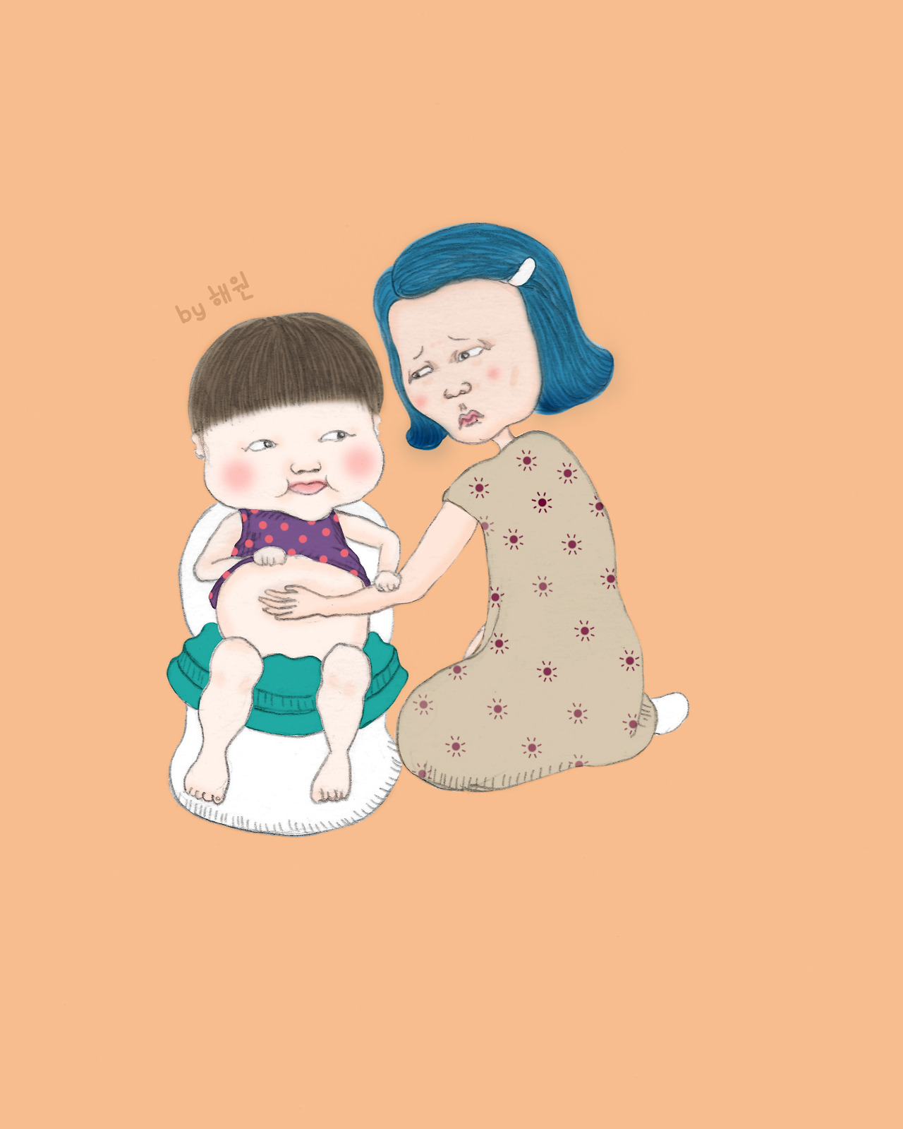 엄마가 하는 일들 중에 하나. 우리 아이 배변활동에 도움주기. 엄마 역할 범위의 무제한