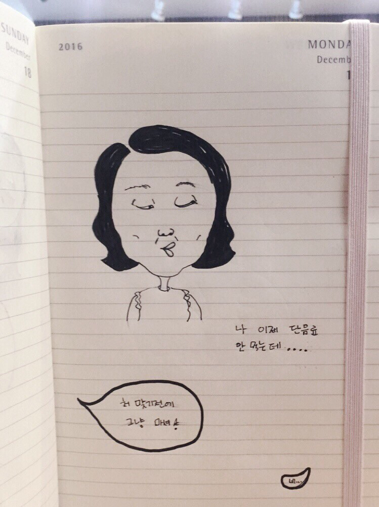 고작 못마땅한 표정과 뚜렷한 내 취향을 내세웠다.