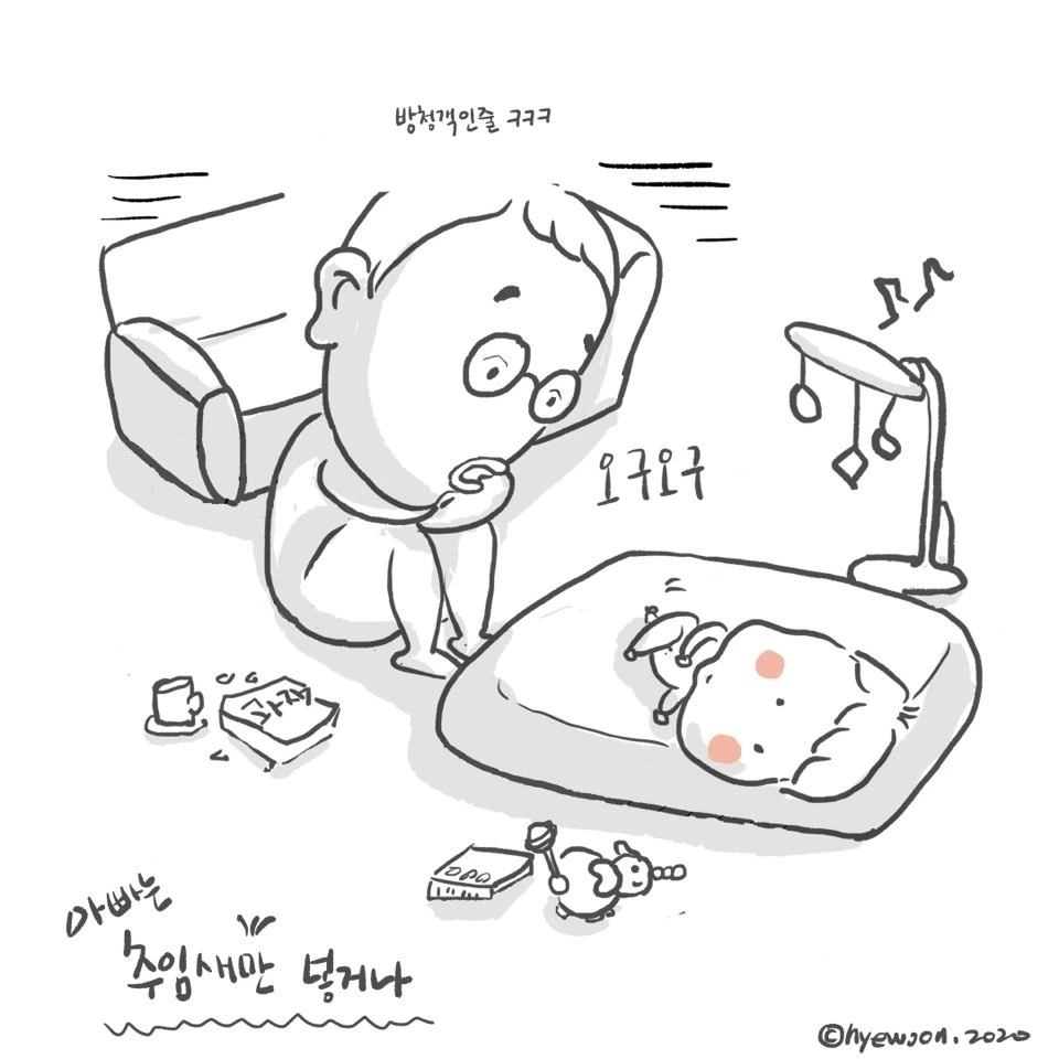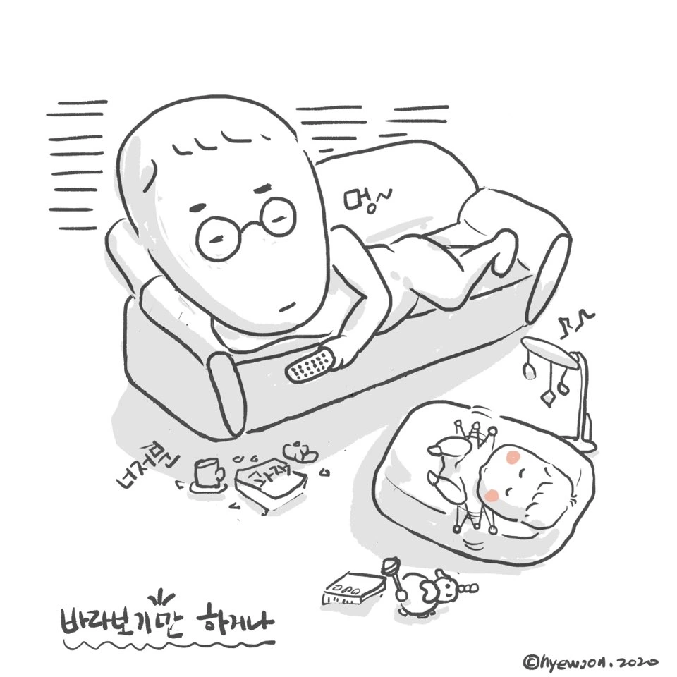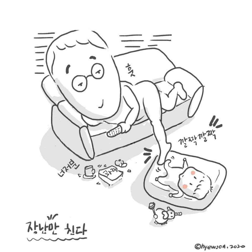 내가 나서지 않고 남편에게 아빠의 자리를 마련해주는 것은 아이를 돌보는 것도 자신의 일이라고 여기게끔 하고 싶은 속내도 있다. 남편은 대체적으로 아이를 양육하는데 적극적인 모습을 보이기도 하지만 이내 느슨해진다. 따라서 내가 할게.라는 마인드로 양육했다가 나 혼자 육아를 하게 될 가능성이 크기 때문에. 그러다 보면 나만 아이를 돌본다고, 내 자식이기만 하냐고 화낼 게 분명하기에 아빠의 자리를 만들어 준다.