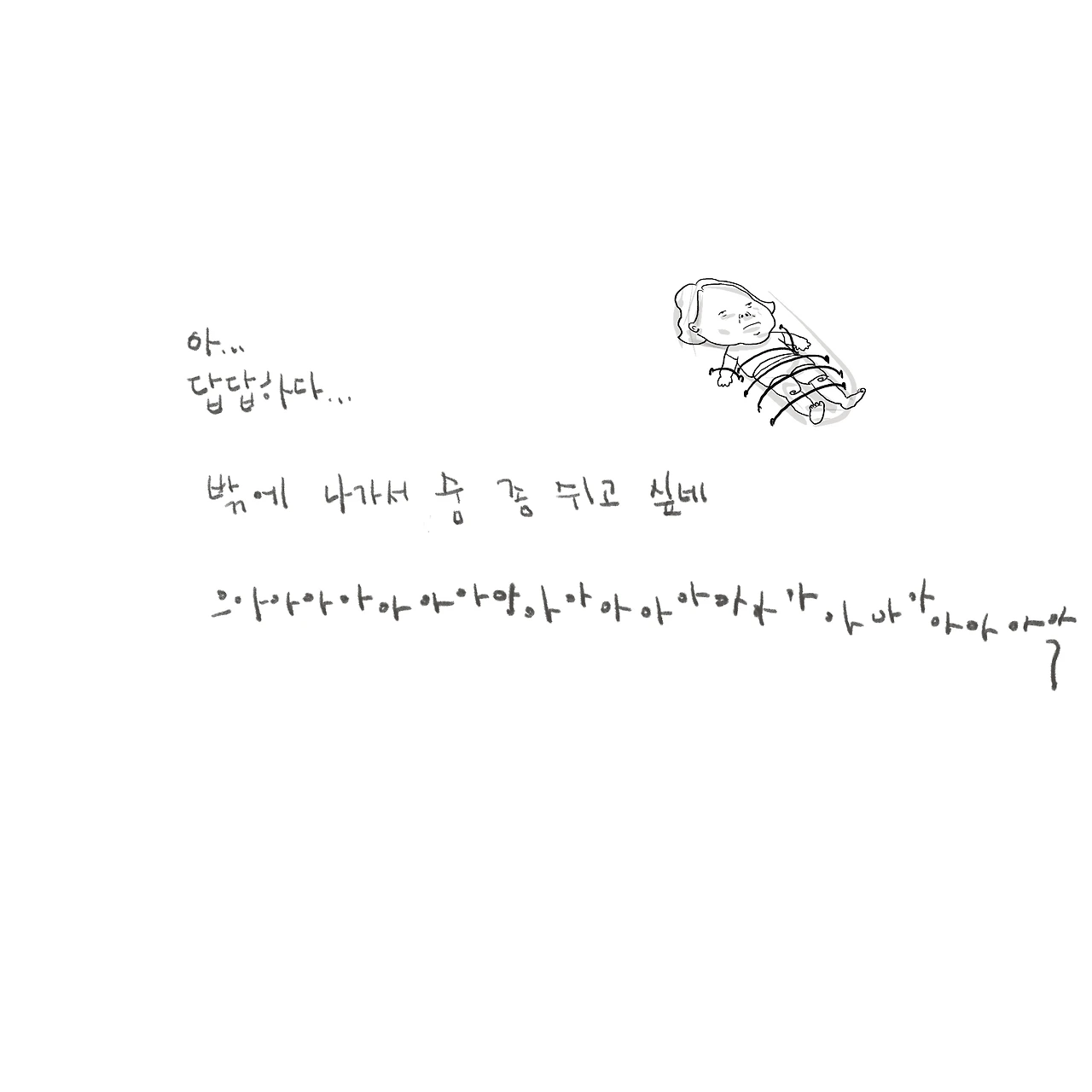 오랜만에 아픈 아이를 데리고 하루 종일 같이 집에만 있는데 아기 시절이 떠올랐다. 감옥에 갇혀 있는 기분. 체한 것처럼 속이 답답했던 그 시절. 소리라도 지르고 싶지만 그런다고 속이 풀릴 것 같지 않은 그 답답함. 으아아아아아악. 그때도 이렇게 쓰고 그리고 어떻게든 풀어냈던 기억이 있다. 드라마나 영화, 라디오, 책 등 새롭게 재미난 정보를 흡수할 수 없었다. 이미 내 안에 무언가가 꽉 차서 답답했기에 계속 풀어내야지 살 수 있었다.
